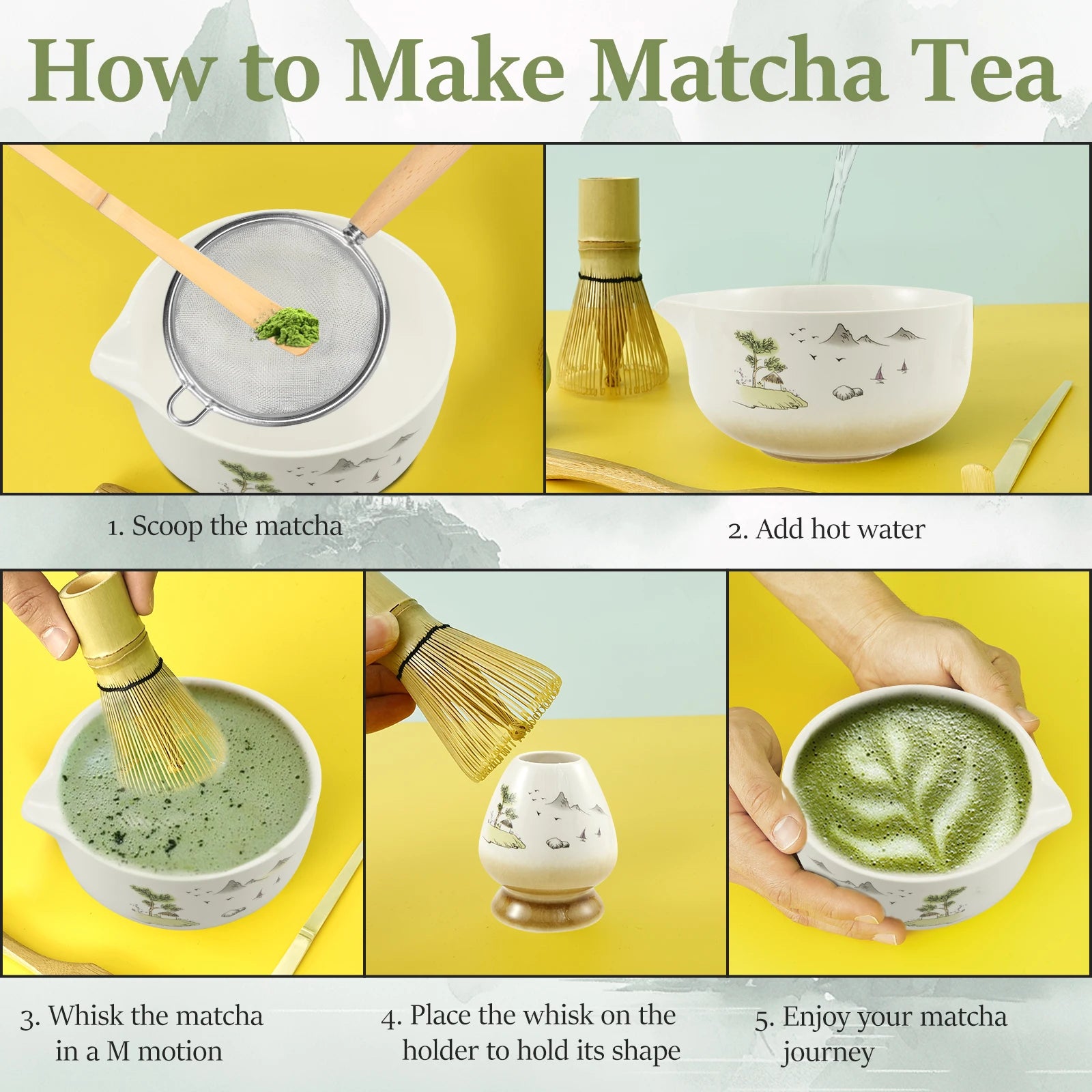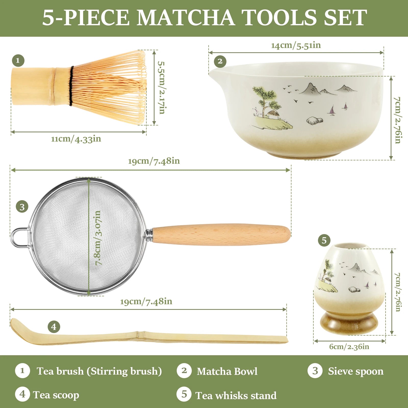 5Pcs Matcha Tea Set Ceremonial Aesthetical Matcha Kit With Whisk Leakproof Maccha Whisk Tea Set for Present Beginner Enthusiast