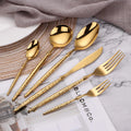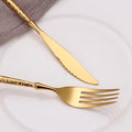 Add a touch of elegance to your dining table with this Gold Cutlery Set crafted from premium stainless steel. The mirror-polished finish and modern hammered handle design bring sophistication to every meal. Perfect for daily use, special dinners, or as a gift.