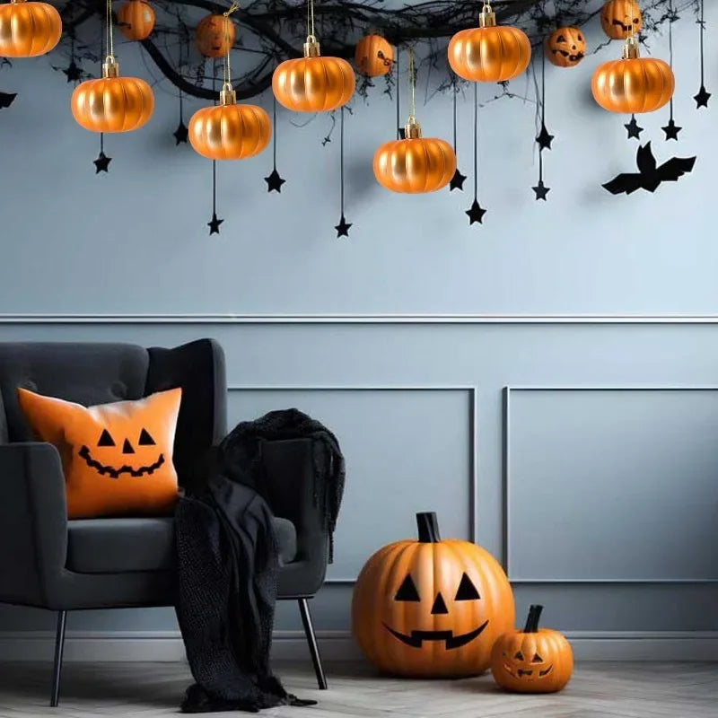 6/60pcs Halloween Hanging Ornaments Thanksgiving Pumpkin Ball Hanging Pendants DIY Christmas Tree Decoration Home Party Decors