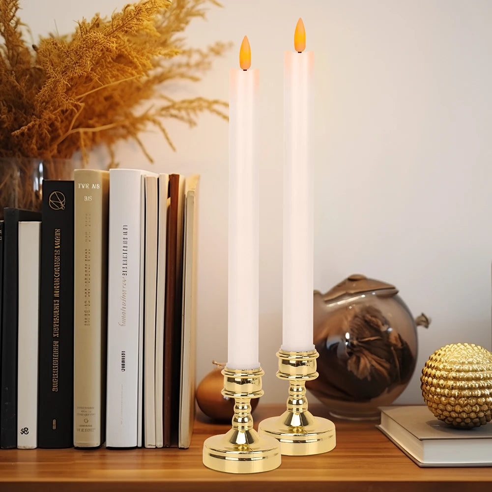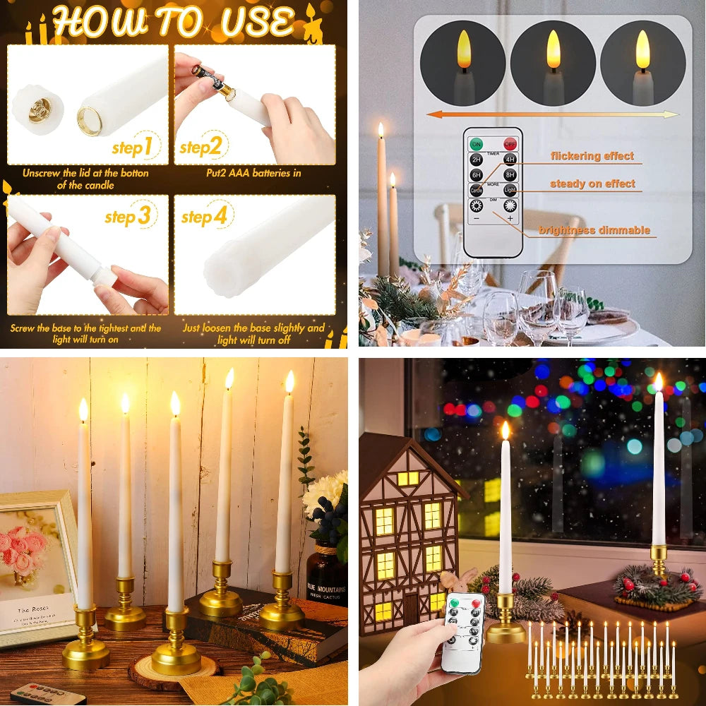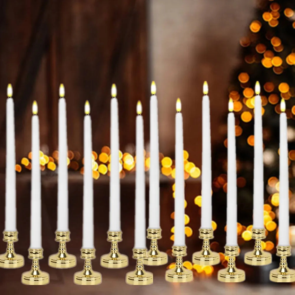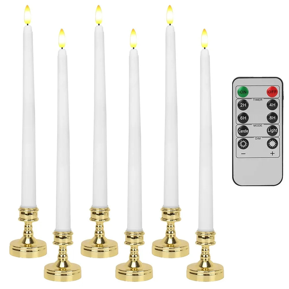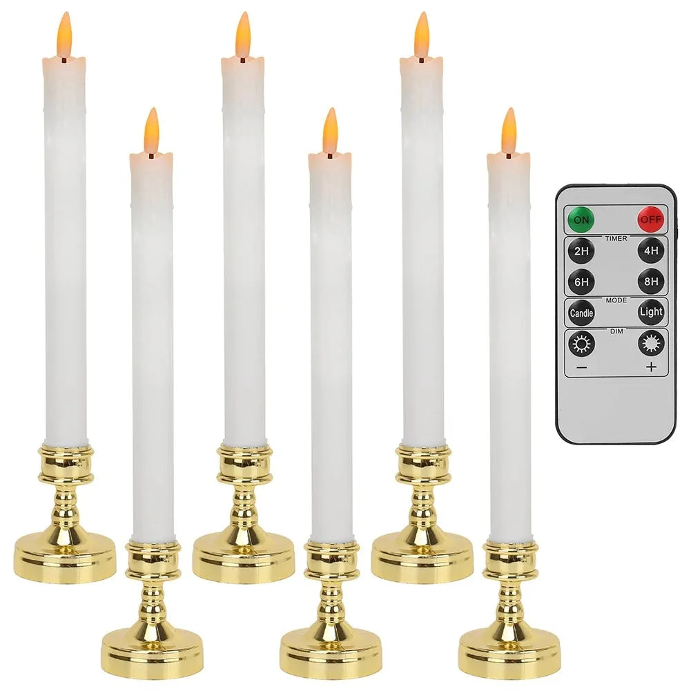 6pc Pack Flameless Taper Candle with Base Flickering LED Tea Light with Candle Holder for Halloween Wedding Christmas Home Decor
