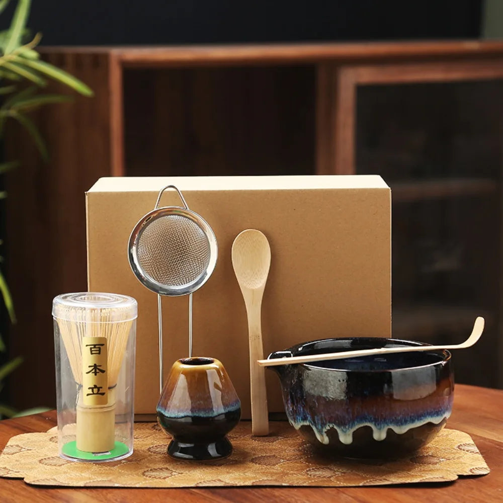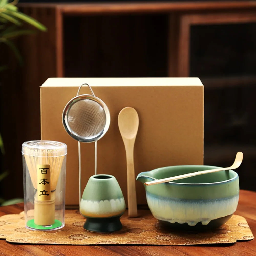 6PCS Ceramic Bamboo Japanese Matcha Tea Set Matcha Bowl Matcha Whisk Holder Matcha Whisk Set Reusable Matcha Making Kit
