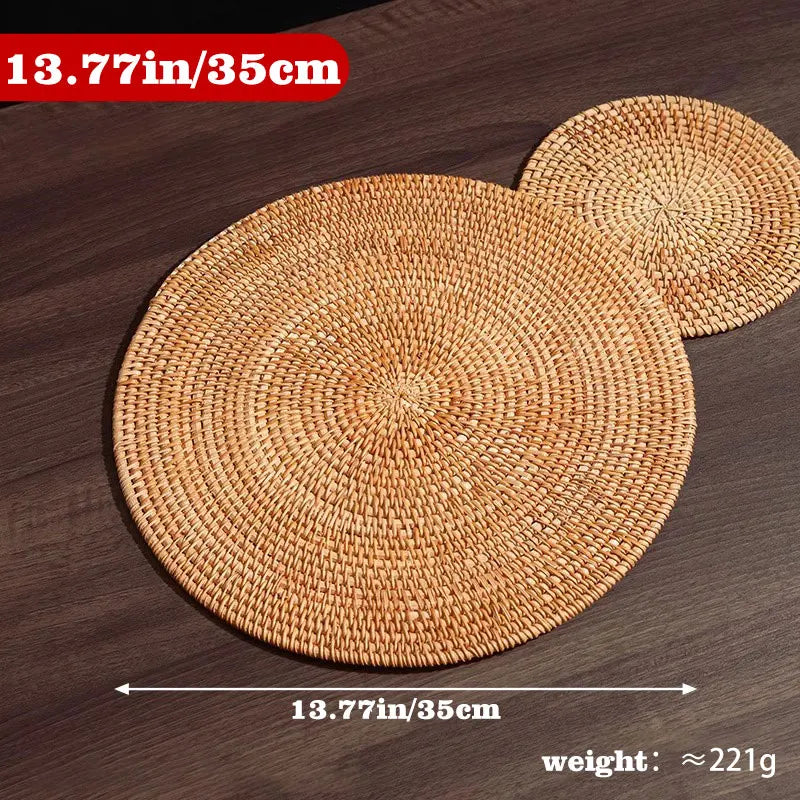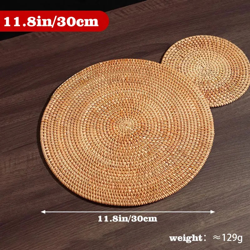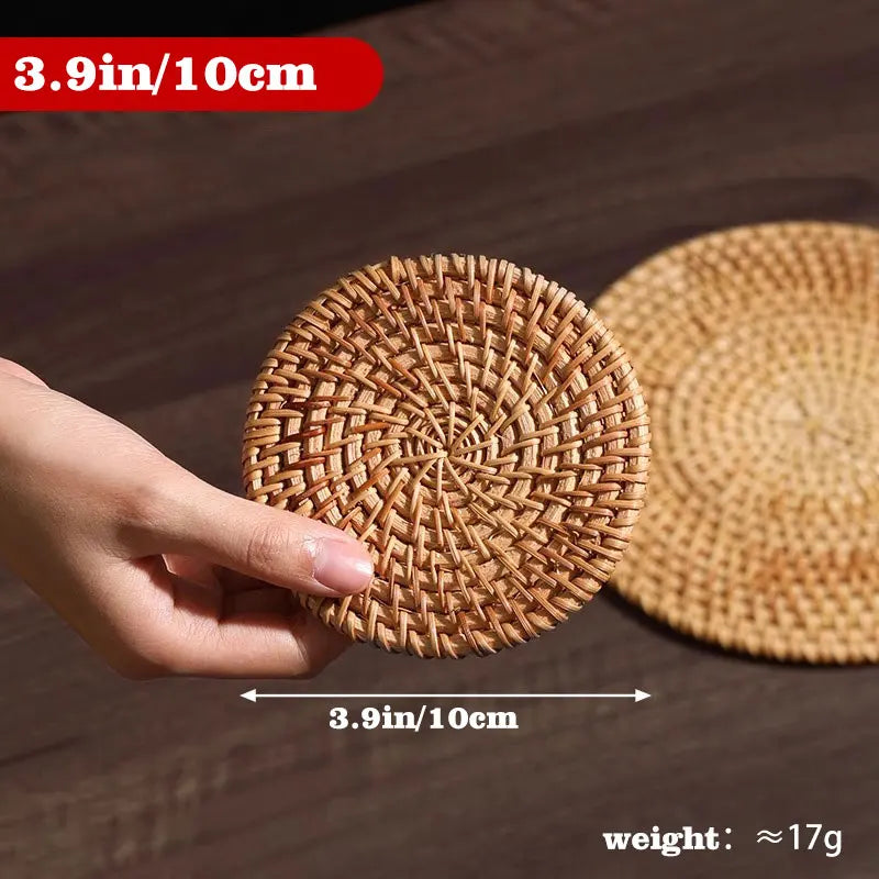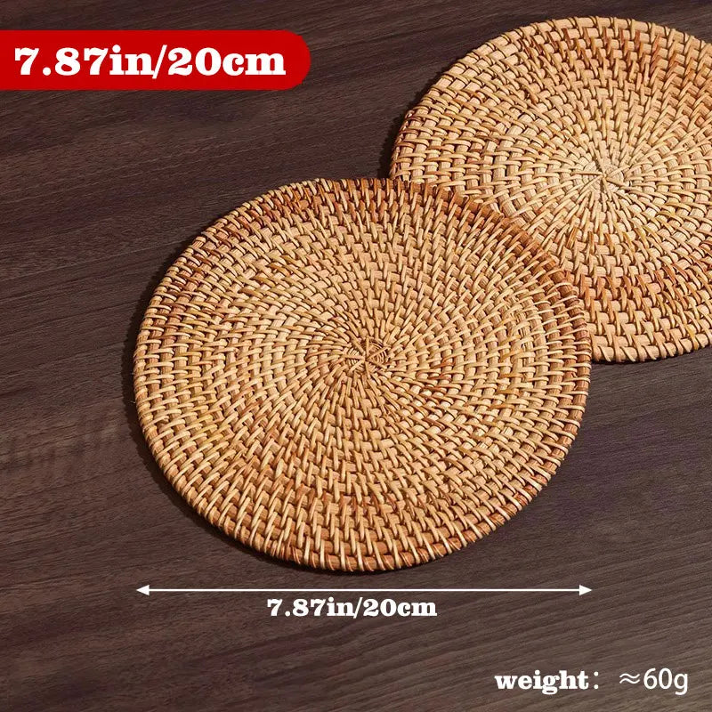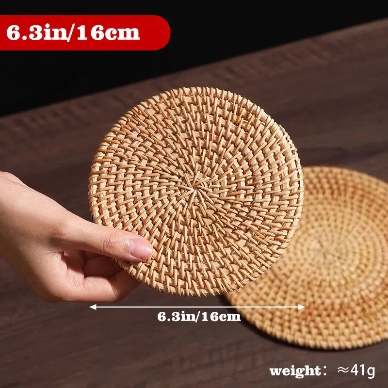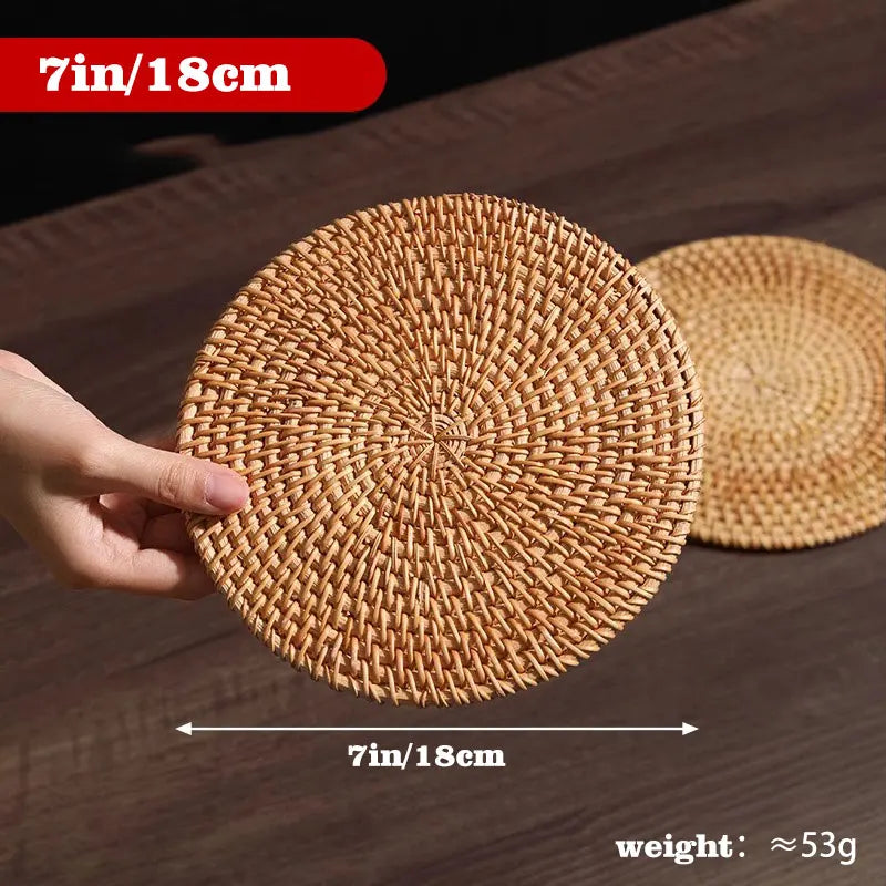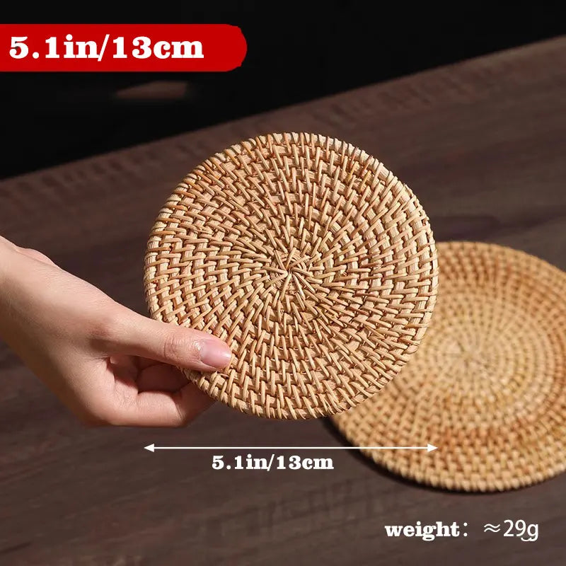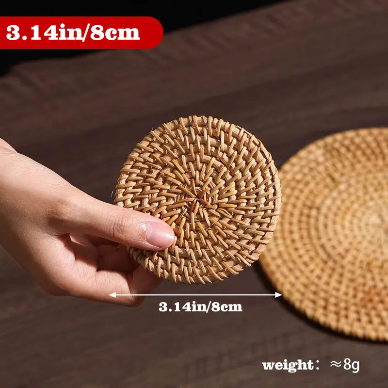 6Pcs Drink Coasters Set For Kungfu Tea Accessories Round Tableware Placemat Dish Mat Rattan Weave Cup Mat Pad Diameter 8Cm