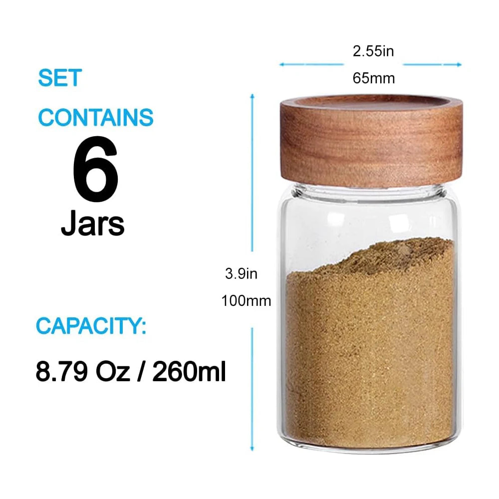 6Pcs Small Glass Spice Jars ,High Sealing Threaded Mouth, 8.79oz /260ml*6,Empty Cylinder Spices Bottles,Storage Jars