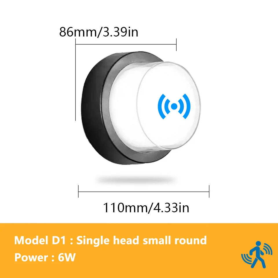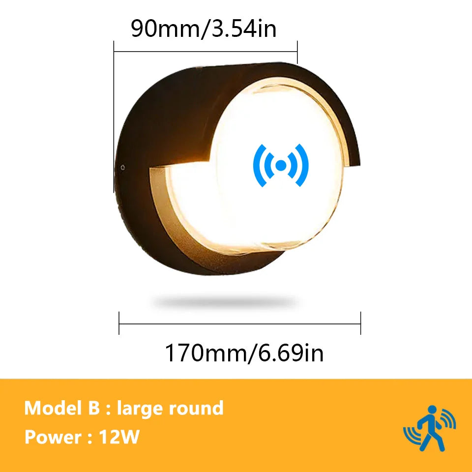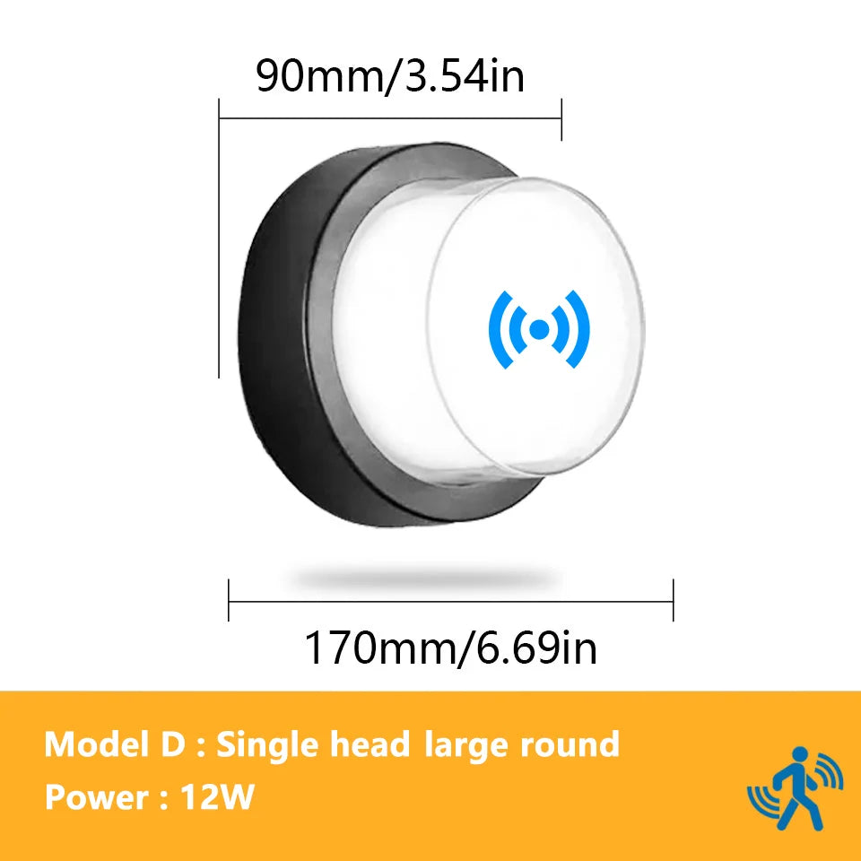 6W 12W Indoor&Outdoor Waterproof IP66 LED Wall Light Radar Motion Sensor Porch Wall Lamp Home Sconce Decoration Lighting