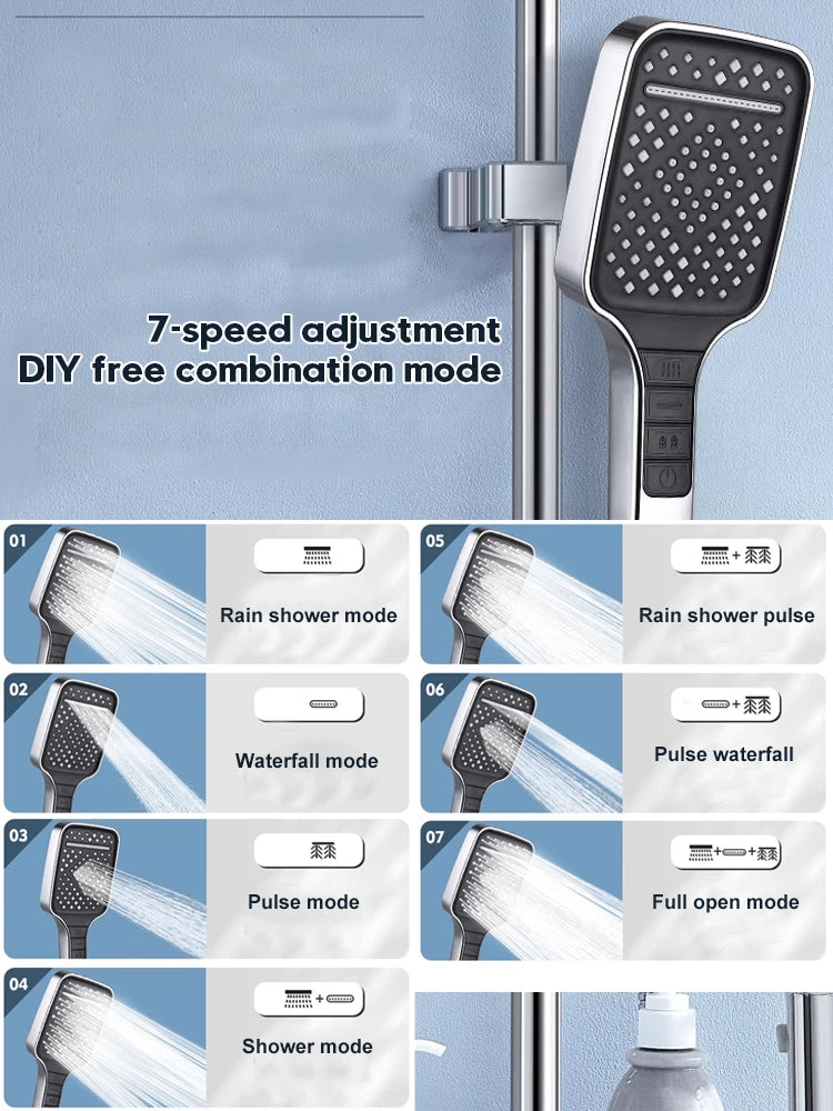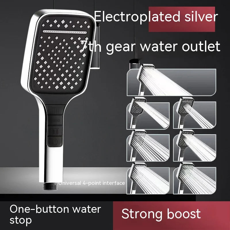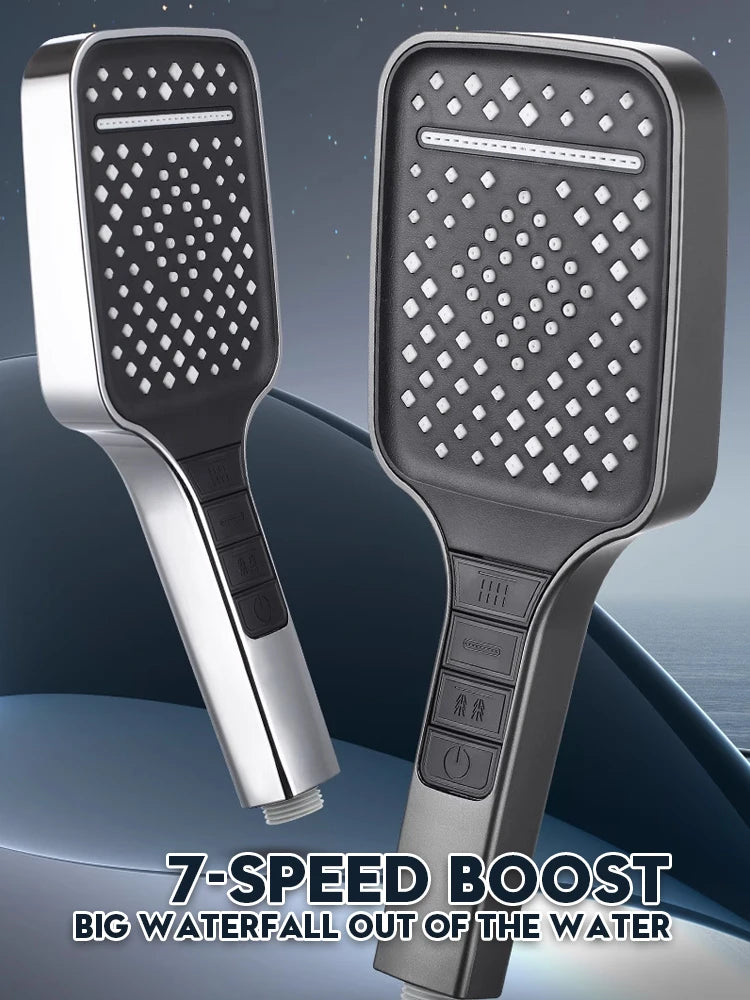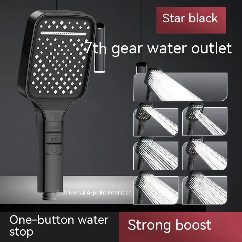 7 Modes Shower Head High Pressure Big Rainfall One Key Stop,Water Saving,Bathroom Faucet Accessories