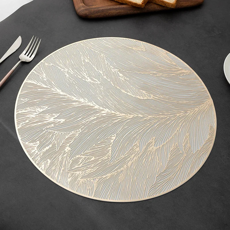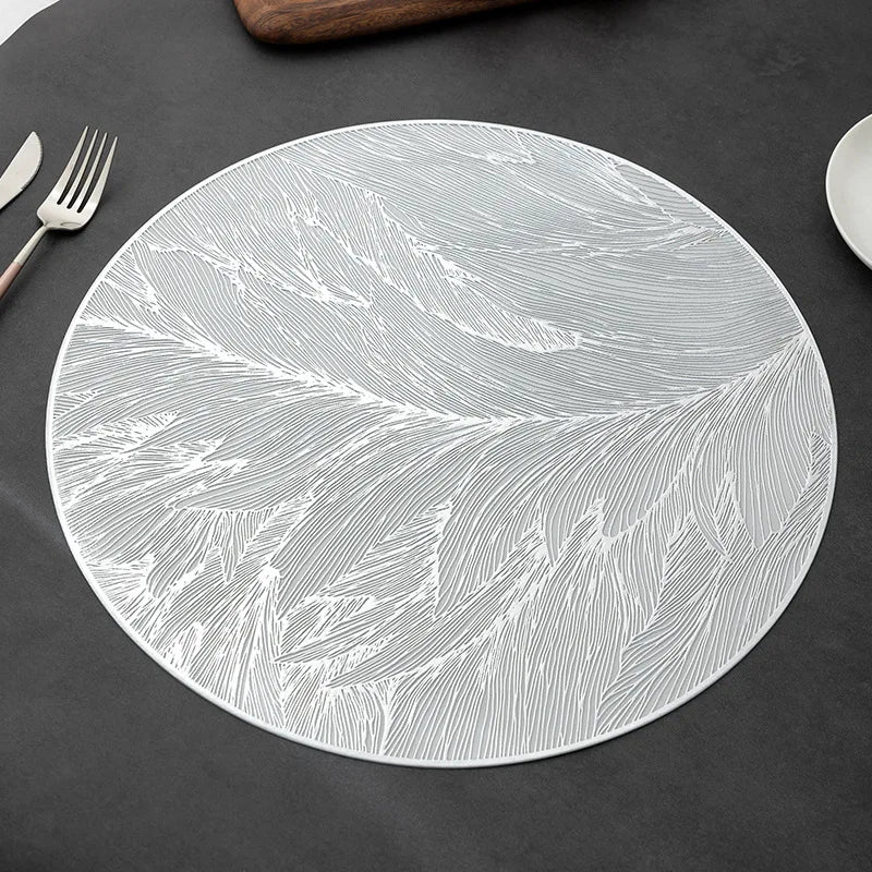 8 pcs Round Placemats Table Mats PVC Waterproof Teapot Pad Flower Texture Coaster Wear-Resistant Kitchen Tools Hot Stamping Mat