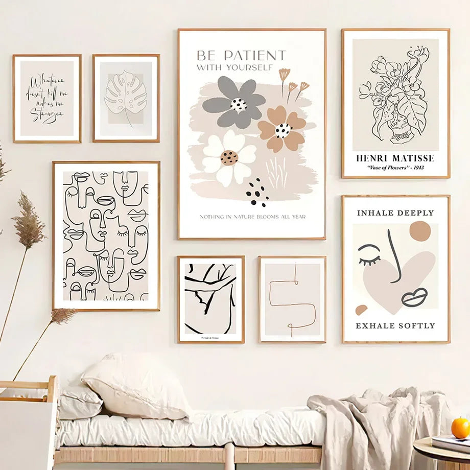 Abstract Matisse Line Face Leaves Flower Wall Art Canvas Painting Nordic Posters And Prints Wall Pictures For Living Room Decor
