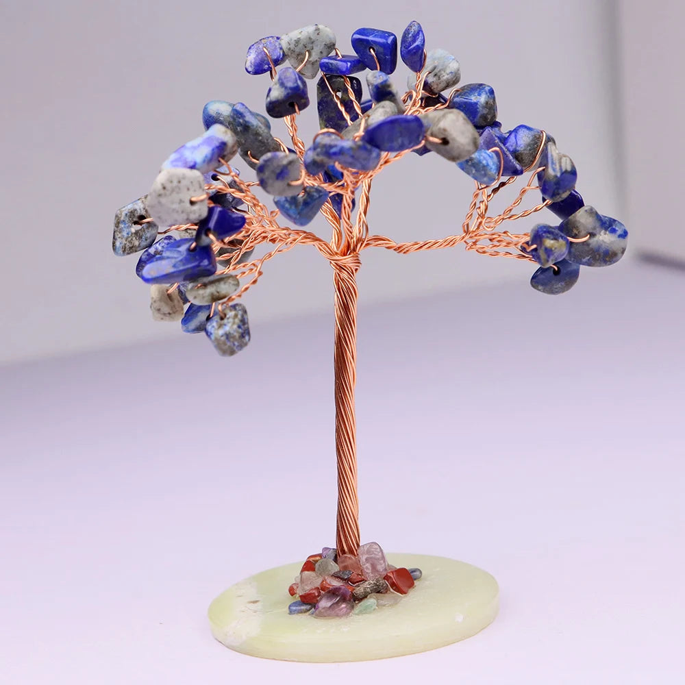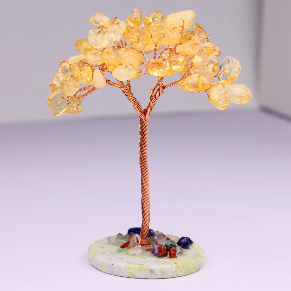 Amethyst Healing Crystals Tree Copper Wire Wrapped on Natural Stone Slice Base Home Desk Living Room Gemstone Decor Mini Sized