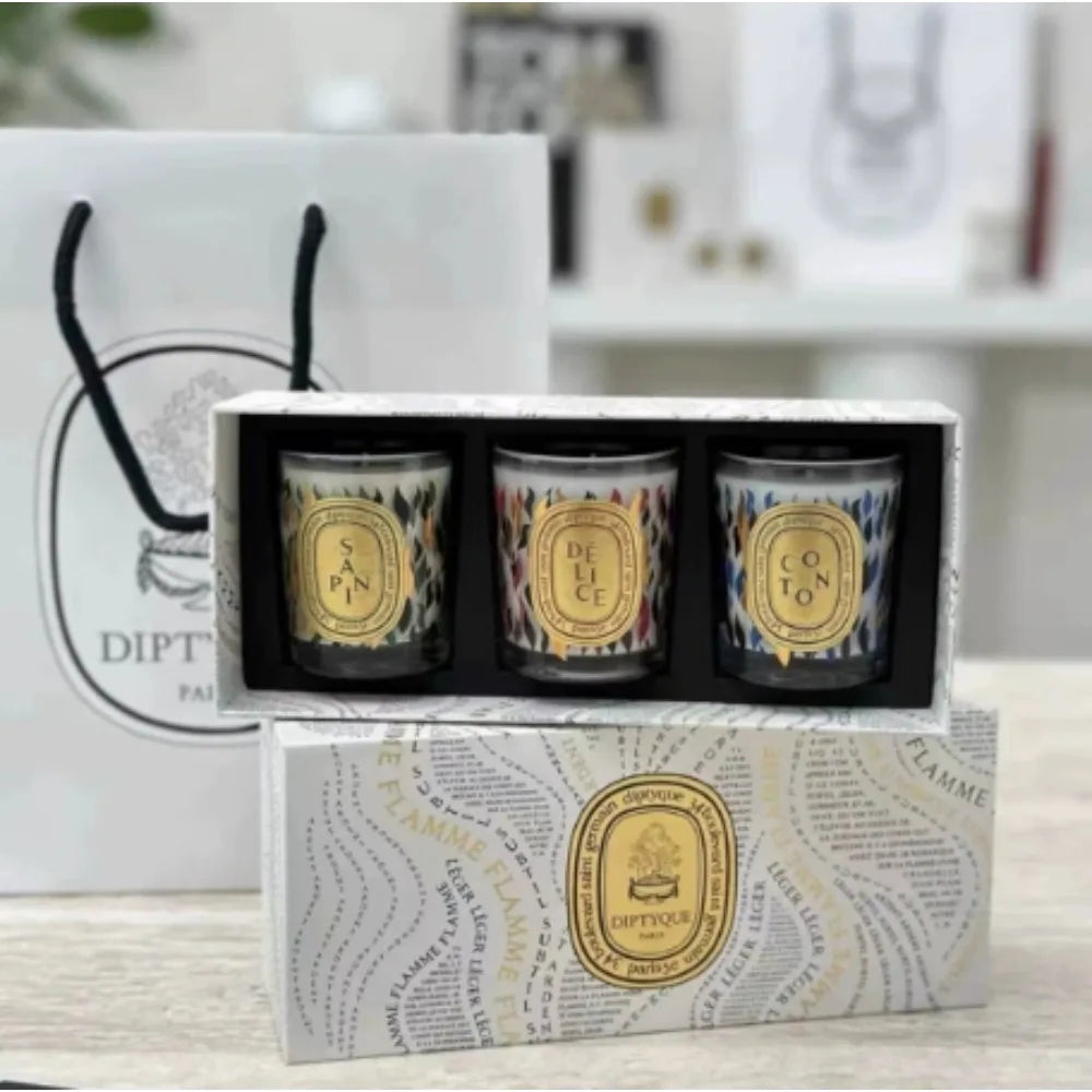 Aromatherapy Candle Limited Three Piece Set with 70g * 3 Fir Tree+Soft Wool+Honey Fruit Gift Box Gift Bag