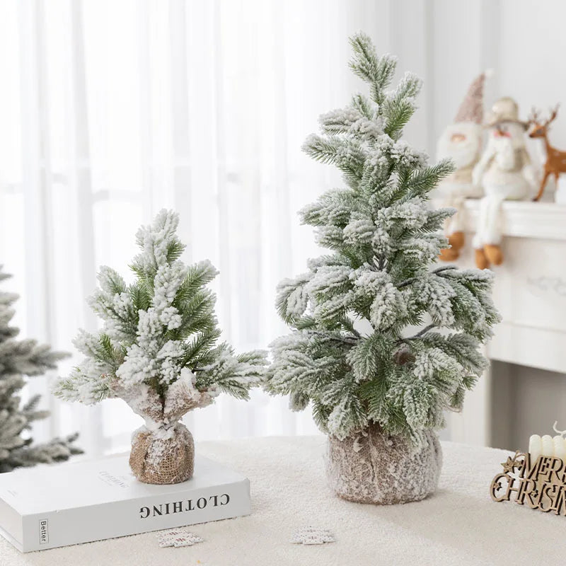 Artificial Snow White Christmas tree home decoration Green plant bonsai light flocking tree encryption PE material