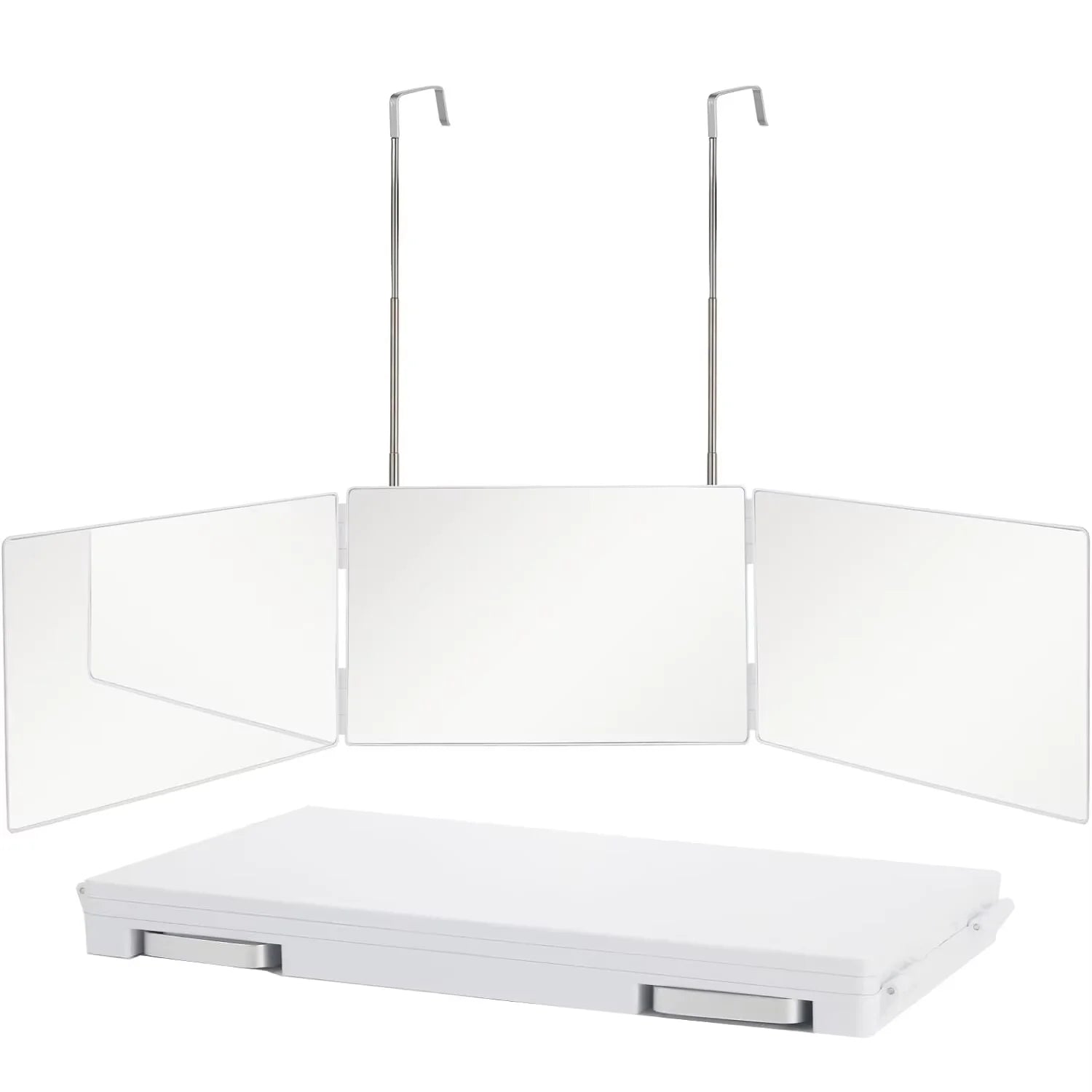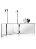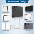 Black Portable 360 Trifold Mirror with Height Adjustable Telescoping Hooks Ideal for Self Hair Cutting Makeup Essential Fordable