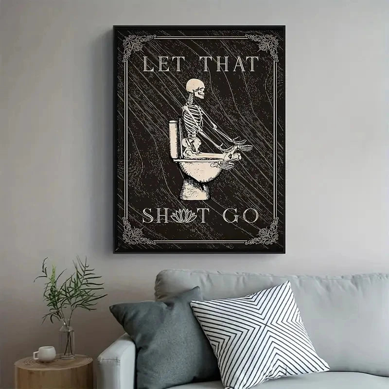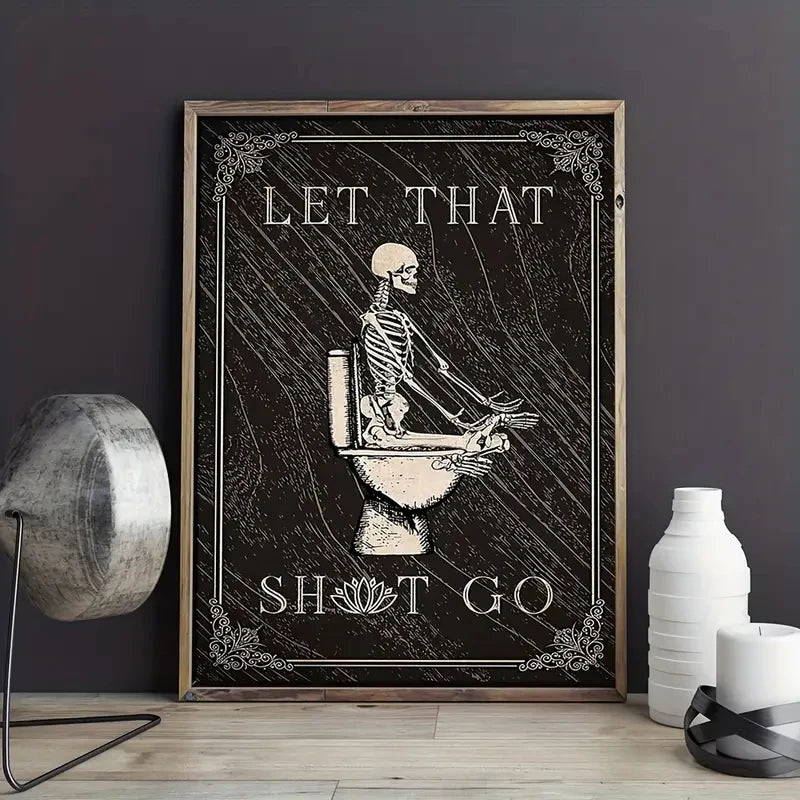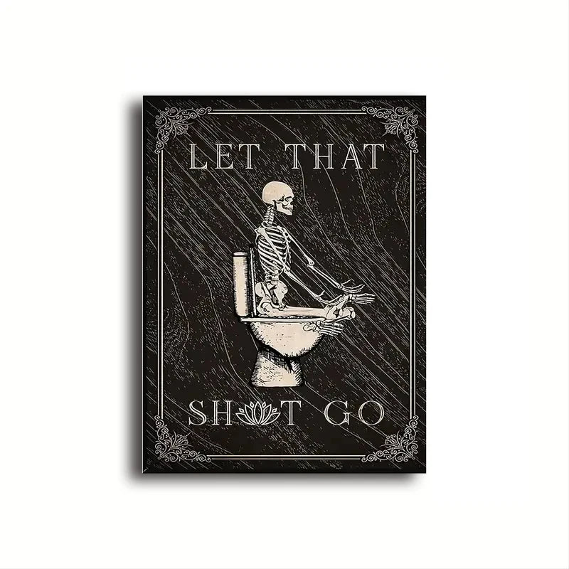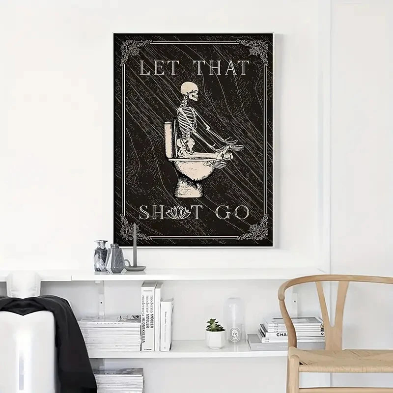 Black Retro Skeleton in The Toilet Canvas Prints I Hope Everything Is Fine Wall Art Poster for Bathroom Home & Halloween Decor