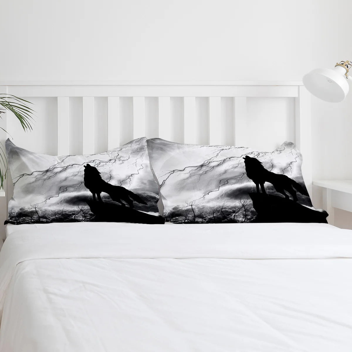 Black Wolf Night Lightning Wild Animal Bedding Set 3pcs Duvet Cover Pillowcase Quilt Cover Double Bed Set Home Textile