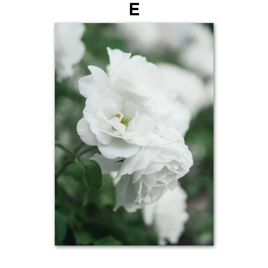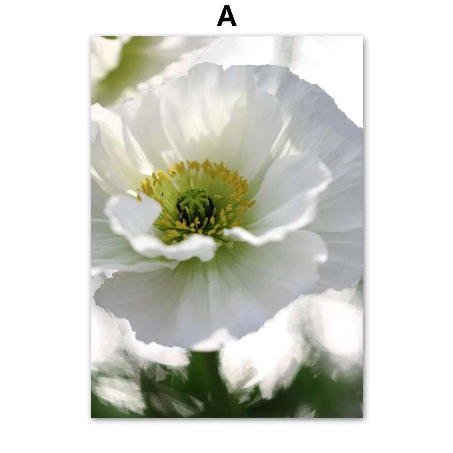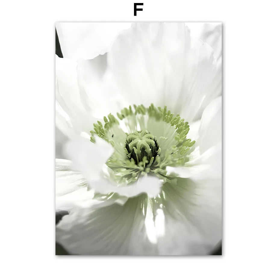 Bloom White Flower Green Leaf Plant Nordic Poster Scandinavian Wall Art Print Canvas Painting Wall Picture For Living Room Decor