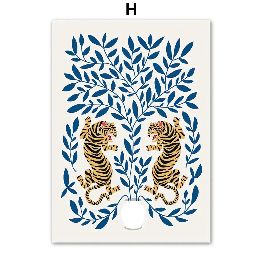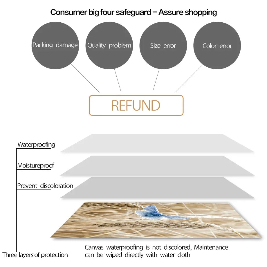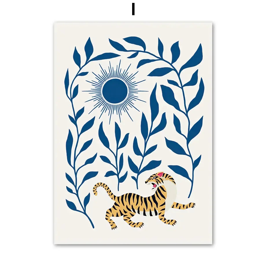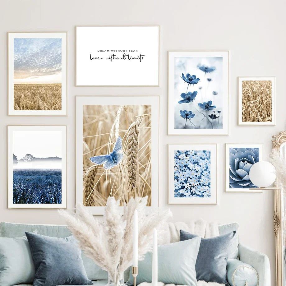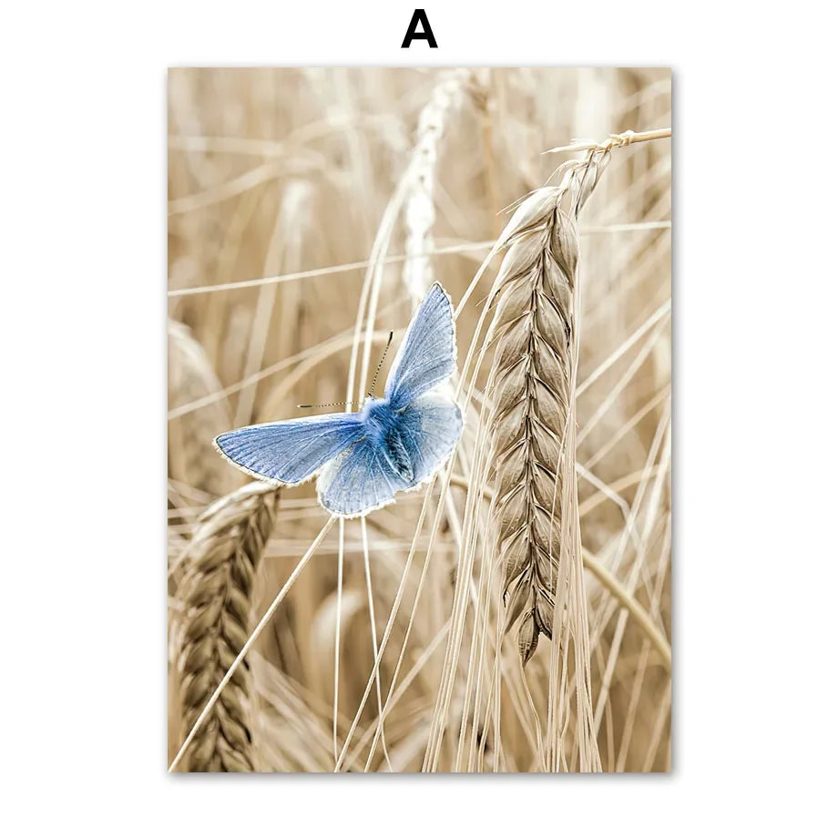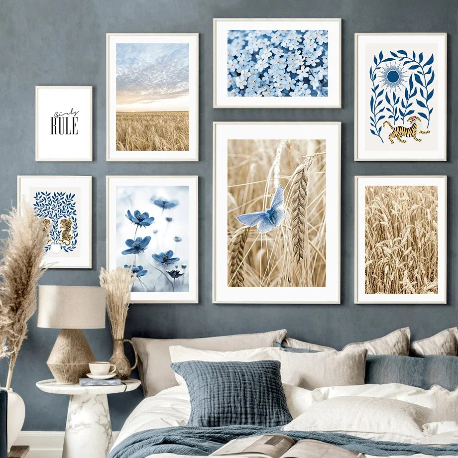 Blue Flower Butterfly Tiger Golden Wheat Wall Art Canvas Painting Nordic Posters And Prints Wall Pictures For Living Room Decor