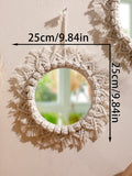 Boho Hand Woven Macrame Decorative Mirrors Wall Hanging Home Decoration Nordic Bedroom Living Room Wall Tapestry Crafts Decor