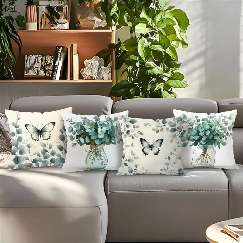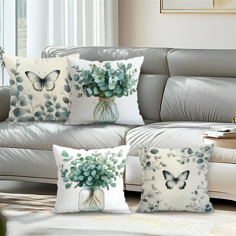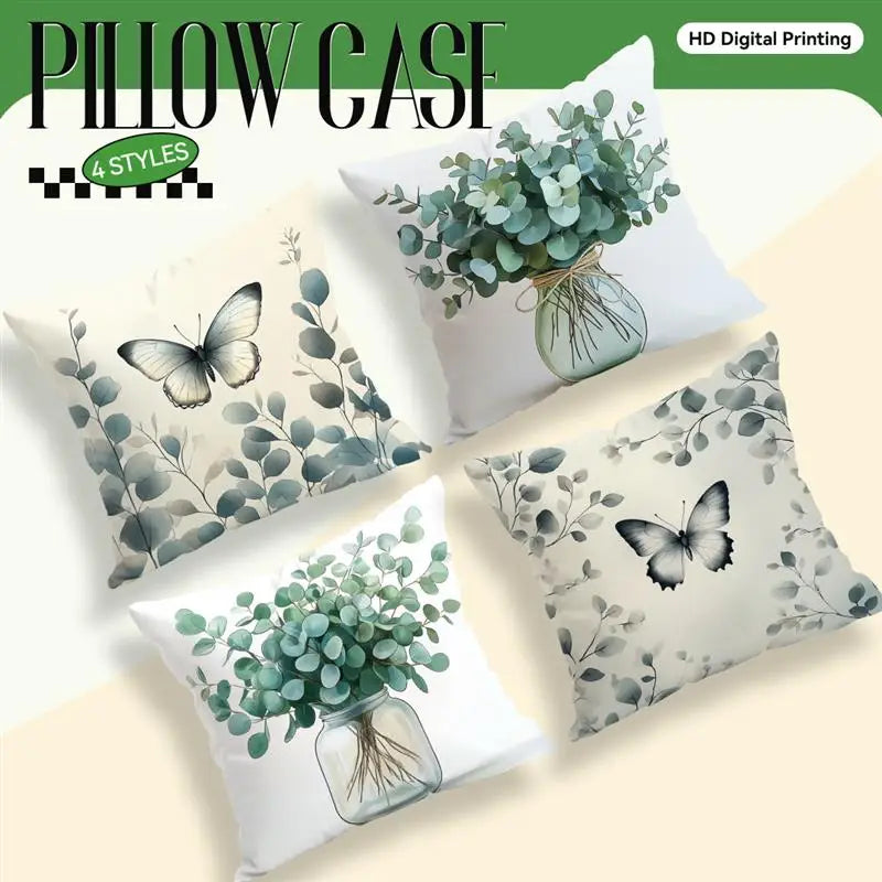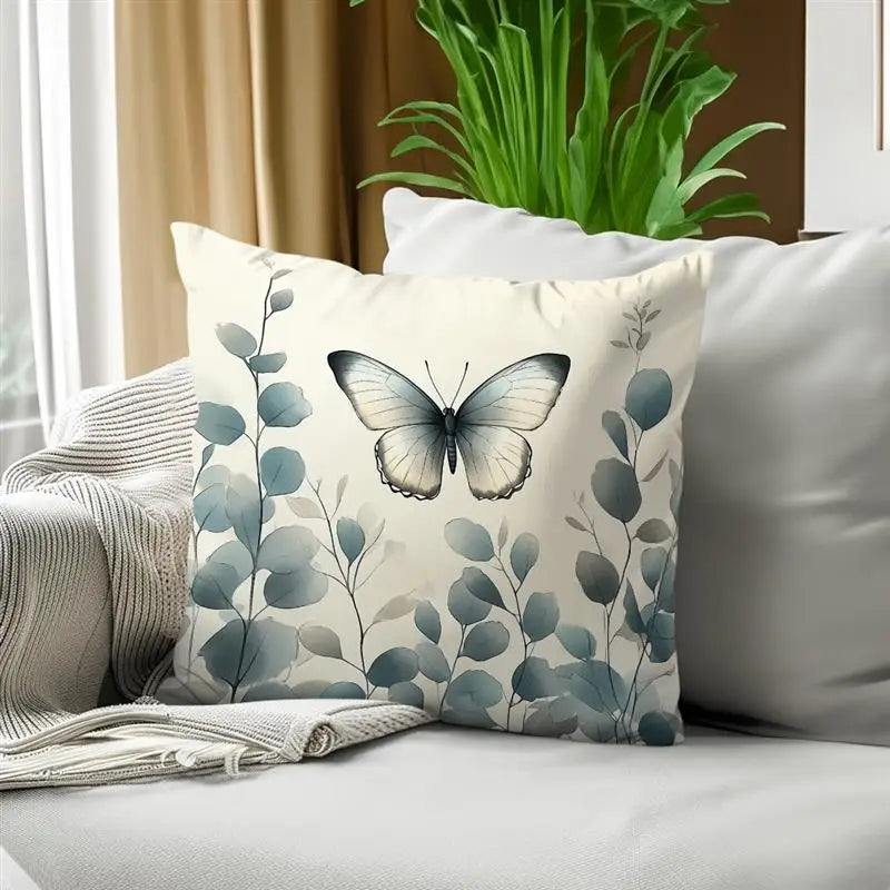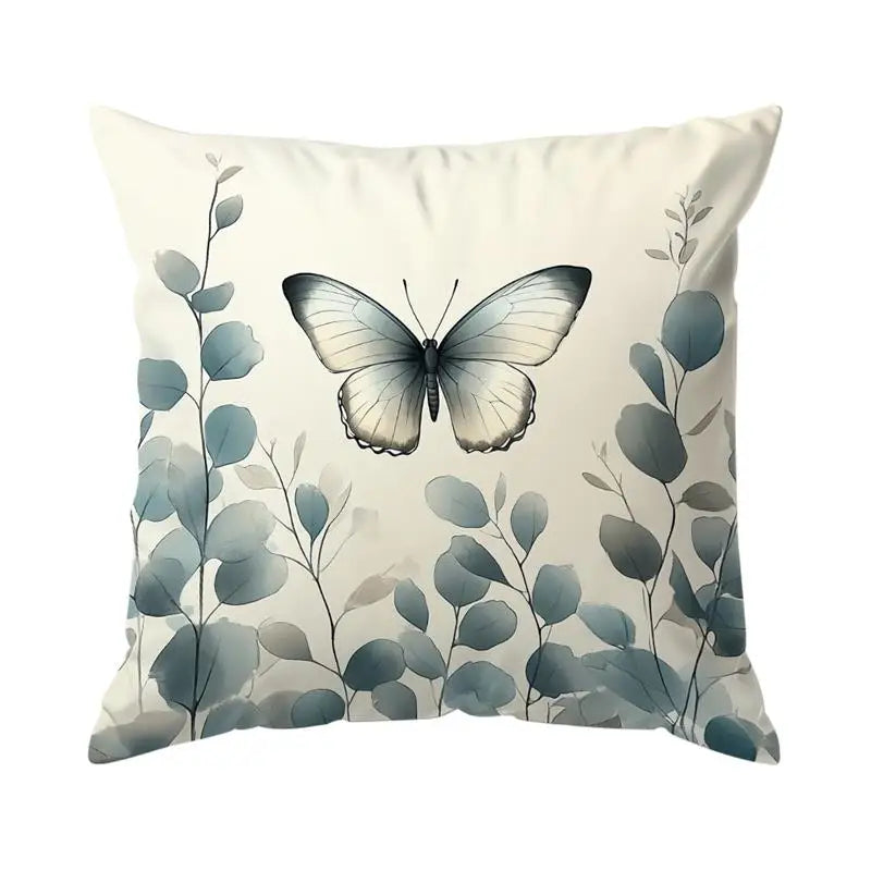 Butterflies And Eucalyptus Leaves Pillowcase Polyester Cushion Cover Throw Pillow Sofa Decoration Pillowcover Home Decor