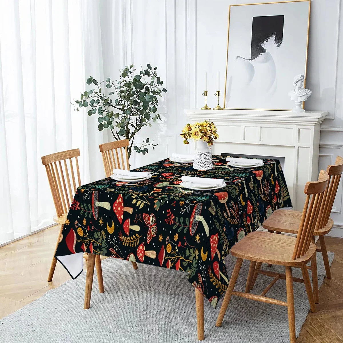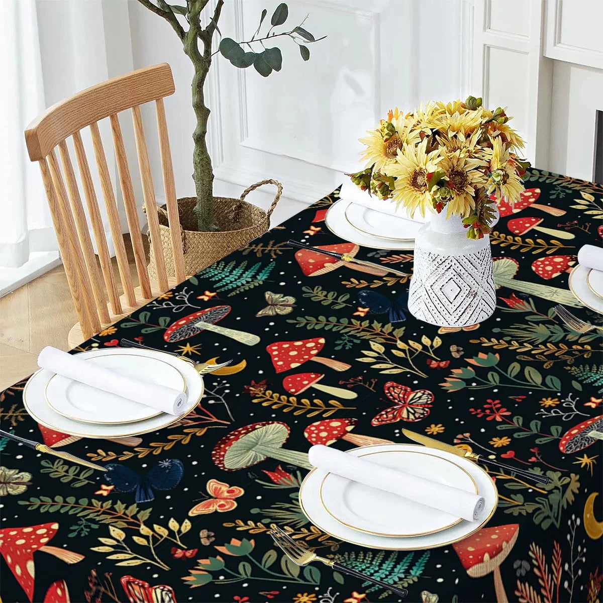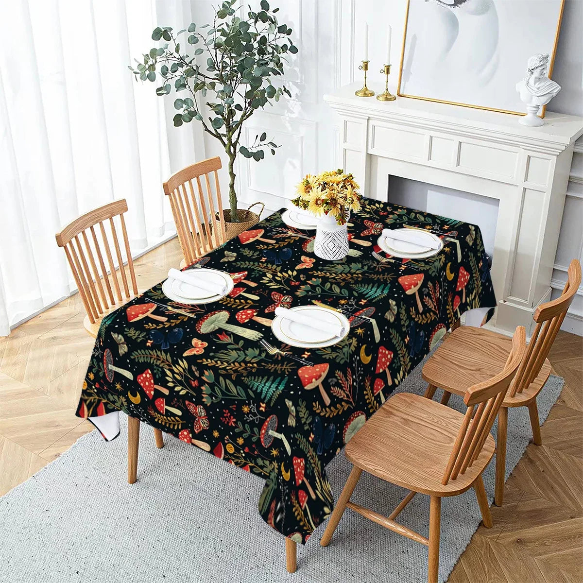 Butterfly Flower Mushroom Moon Watercolor Waterproof Polyester Tablecloths Table Party Decoration Dining TablesCover Manteles