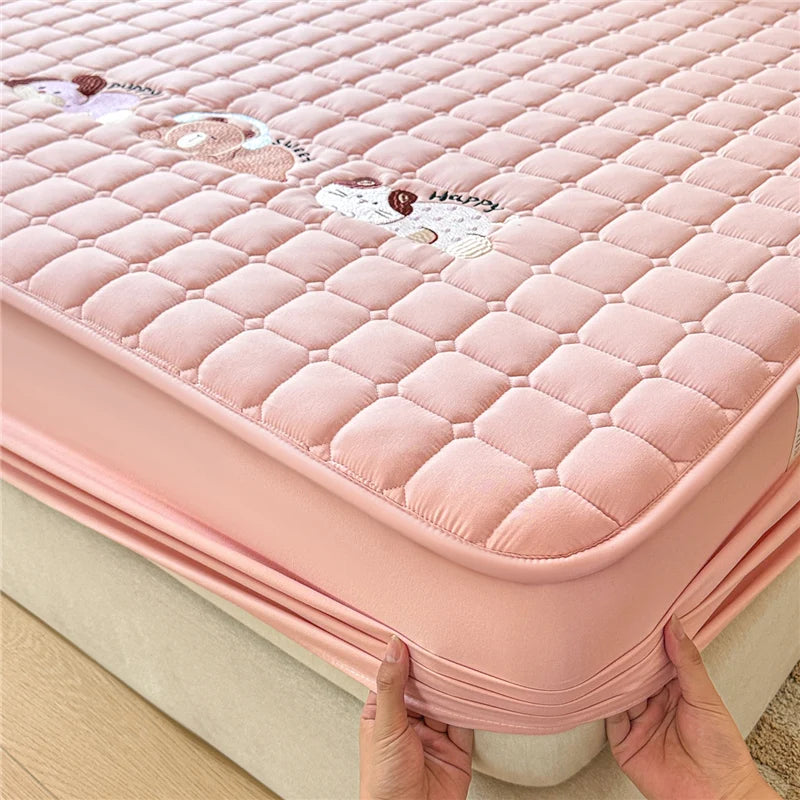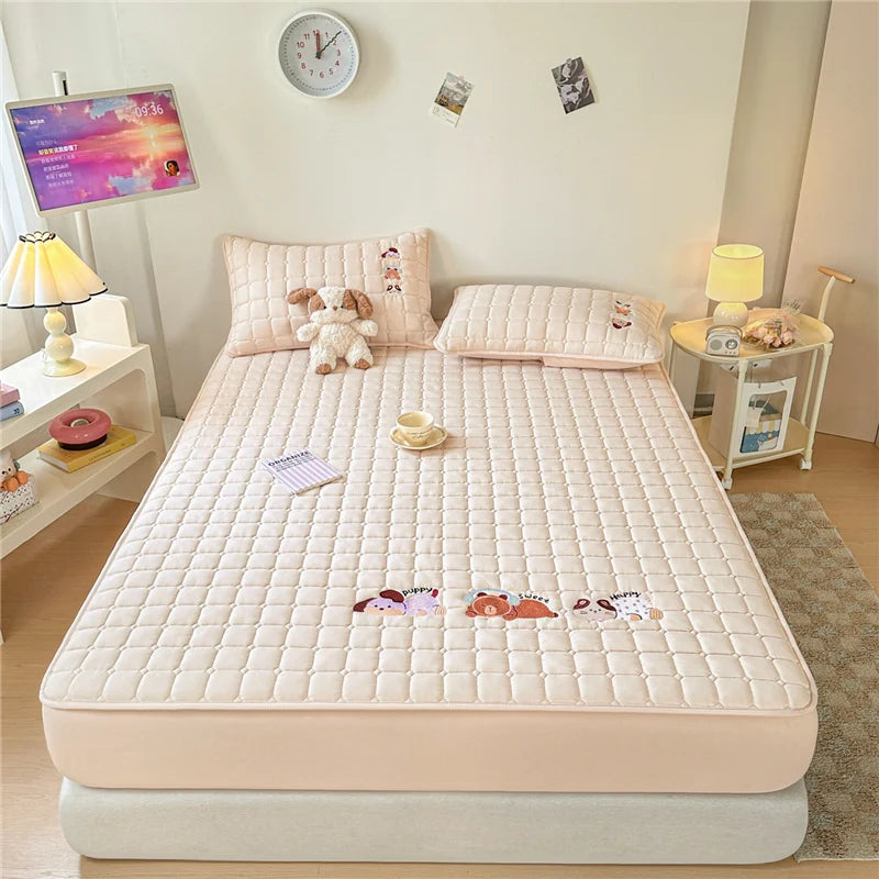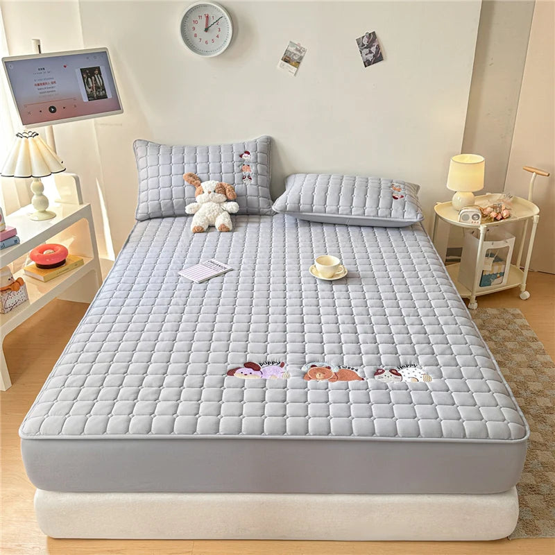 Cartoon Embroidered Bed Cover Quilted Mattress Protector Non-slip Bedspread Thicken Bed Linen 매트리스 커버 (No Pillowcase)
