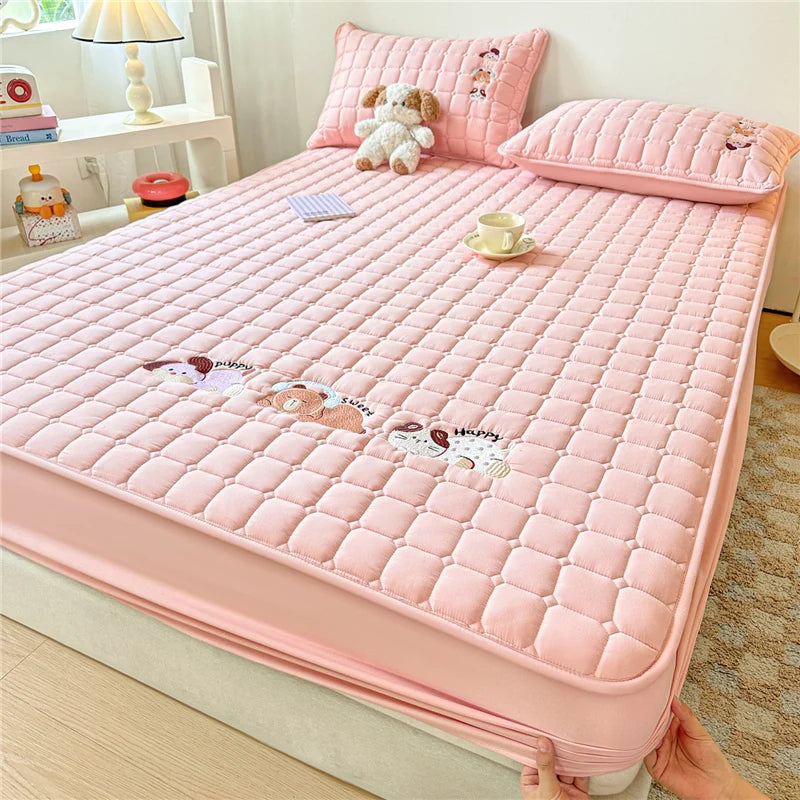 Cartoon Embroidered Bed Cover Quilted Mattress Protector Non-slip Bedspread Thicken Bed Linen 매트리스 커버	 (No Pillowcase)