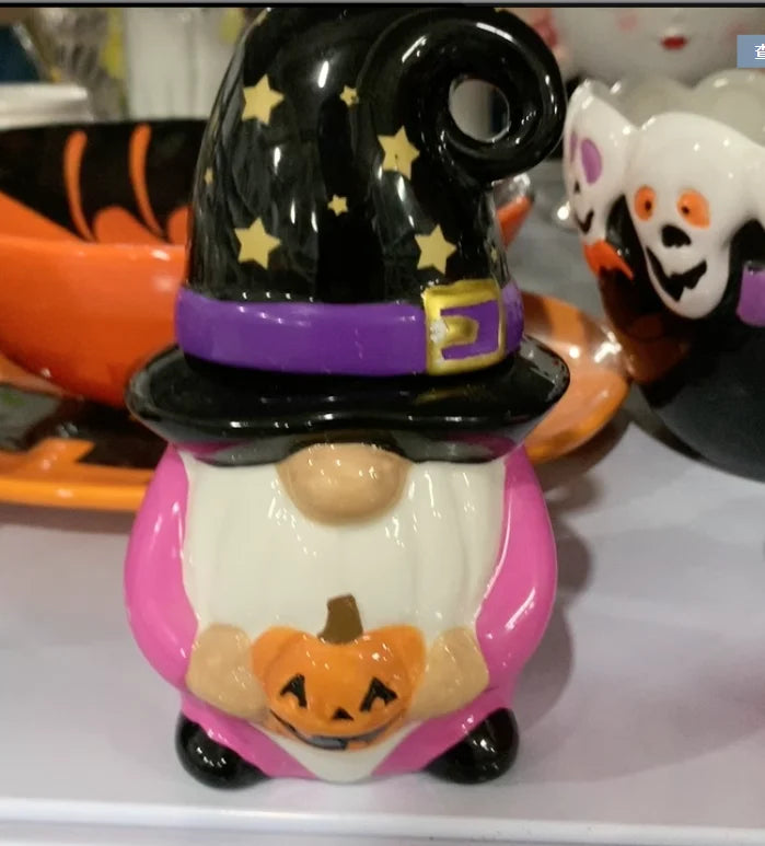 Cartoon Halloween All Saints' Day 3D Relief Handdrawn Ceramics Cake Candy Jar Storage Tank Teapot Tableware Household Dinnerware