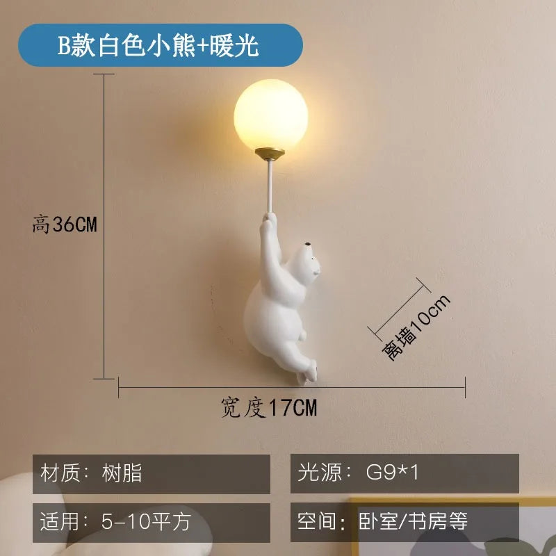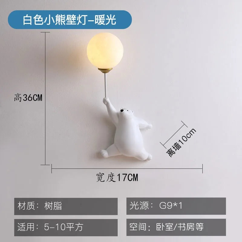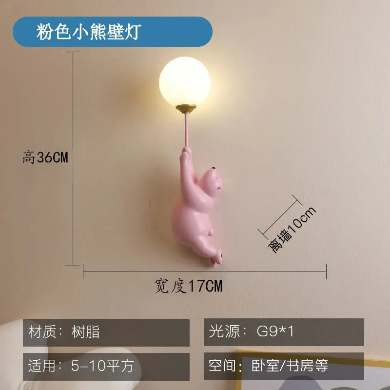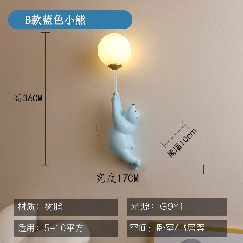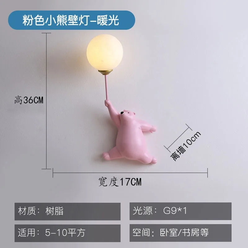 Cartoon led Bear Wall Lamp for Shildren Kids Baby Girl Bedroom Bedside Wall Light With 3D Printing Moon Decor Lighting FixtureS