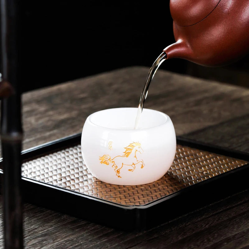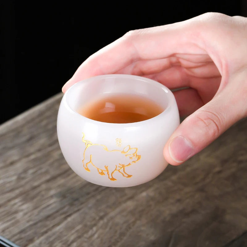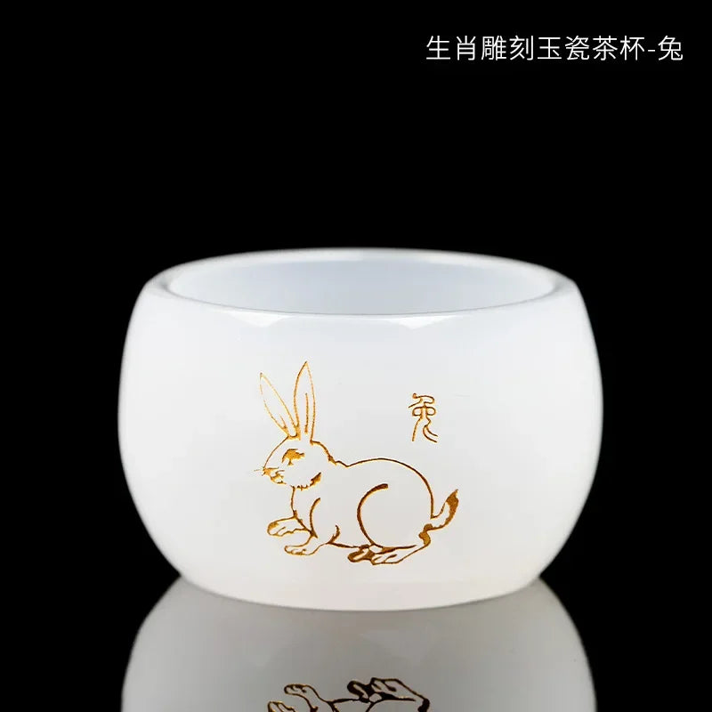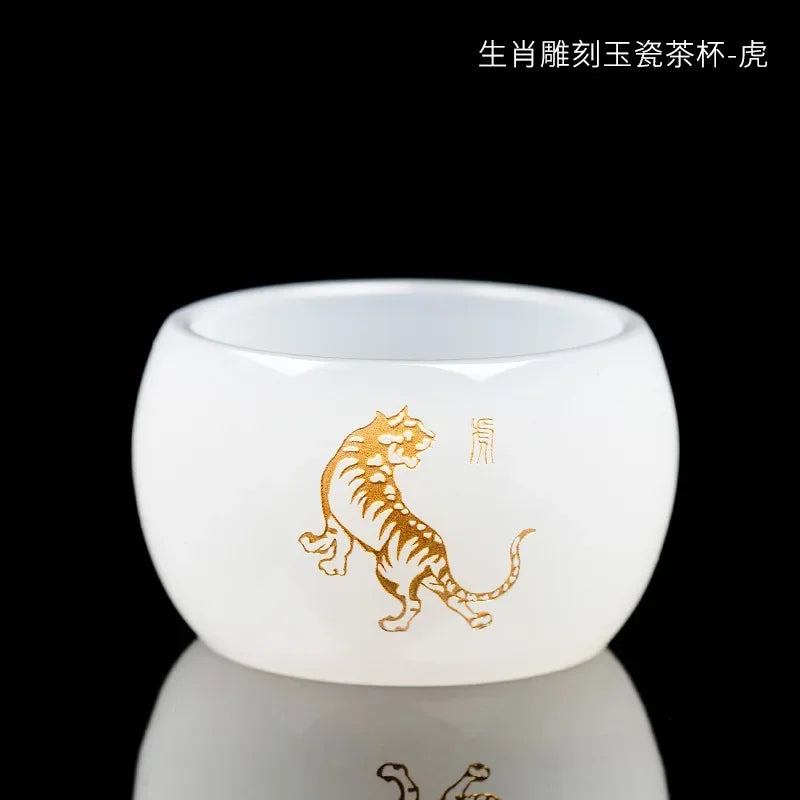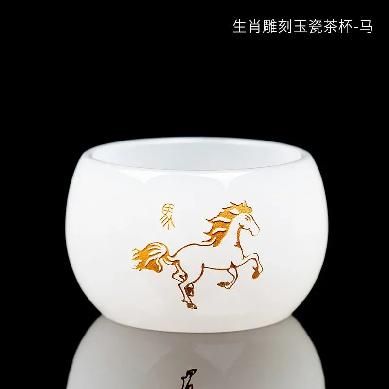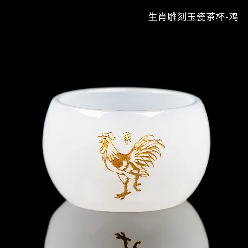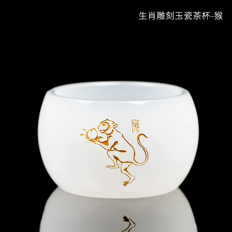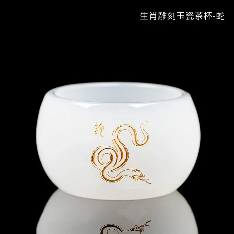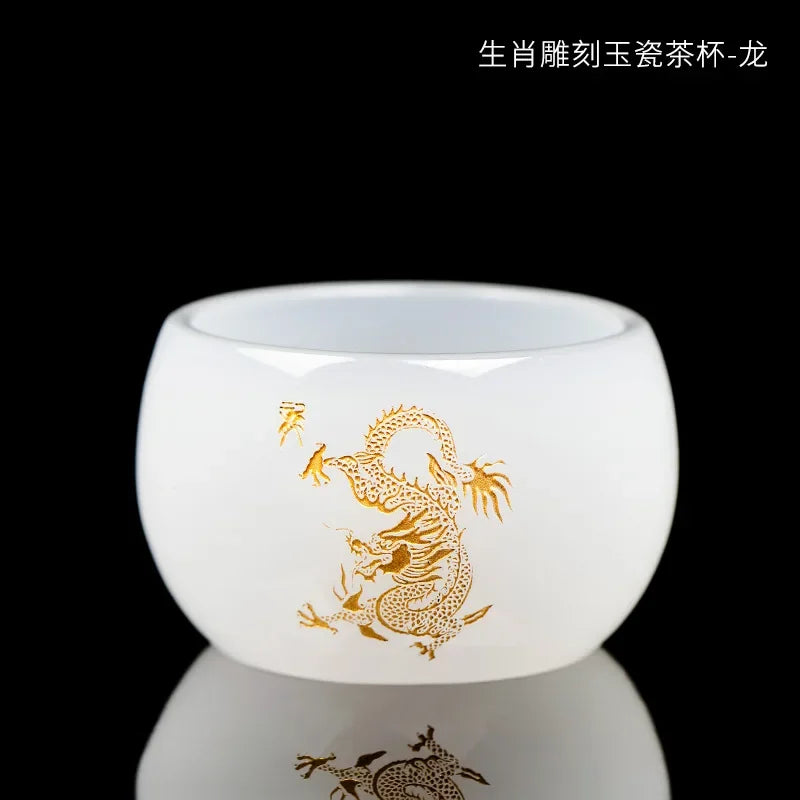 Carved Jade Porcelain Teacup of The Chinese Zodiac Master Tea Cup Single Glass Glazed Tea Set Year of The Dragon Teacup