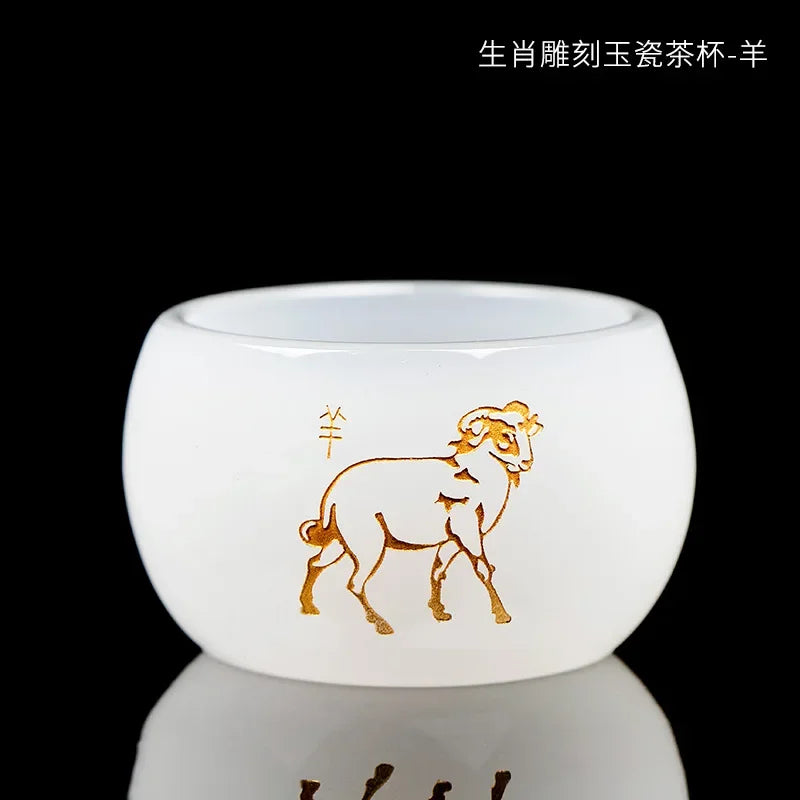 type: Jade porcelain teacup carved with Chinese Zodiac