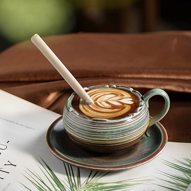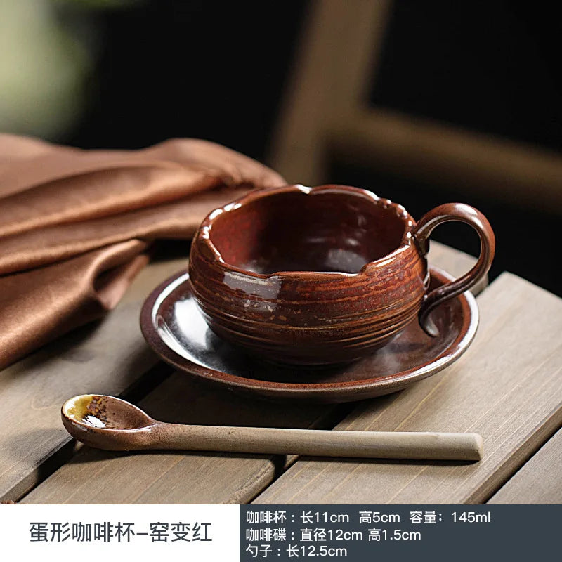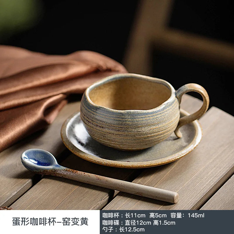Ceramic Retro Coffee Cups and Plates Creative and Personalized Kiln Made Mugs Latte High Aesthetic Latte Cups