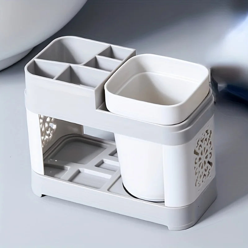 Chic Hollow Design Toothbrush & Toothpaste Holder Set with Drain - Ideal for Bathroom Organization Home Decor