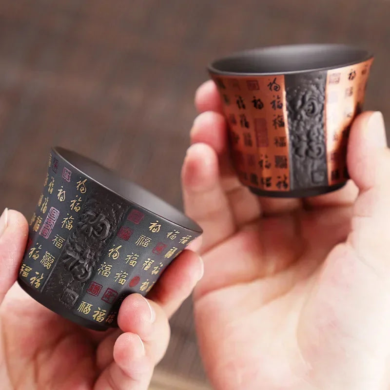 Chinese Classical Calligraphy Baifu Purple Sand Master Single Cups, Household Kung Fu Tea Cup Sets, Small Bowl, Individual, 50ml