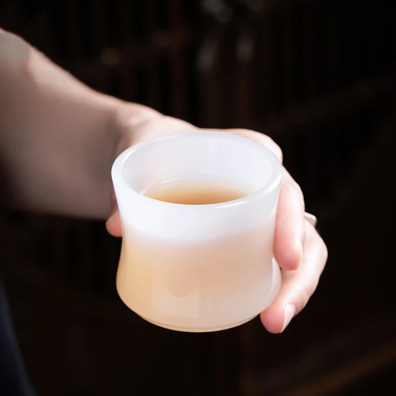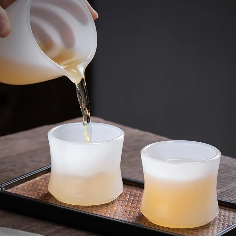 Chinese White Cup Jade Porcelain Tea Cup Bamboo Joint Cup Master Cup Liu Li Glass Tea Cup for Tea Simple Style