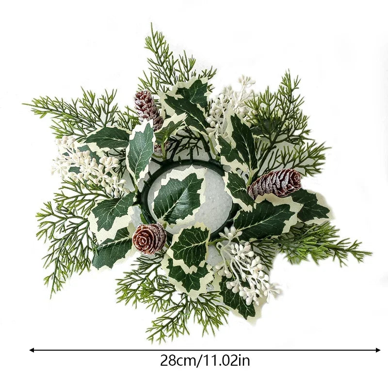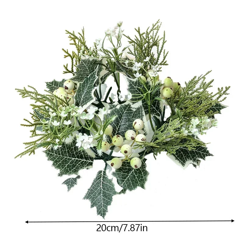 Christmas Candlestick Wreath Artificial Berry Garland Candle Ring Xmas Table Decoration Green Leaves Wreath for Candle Holder
