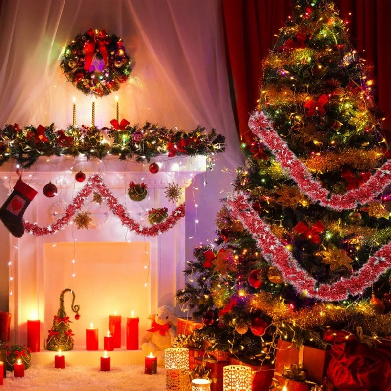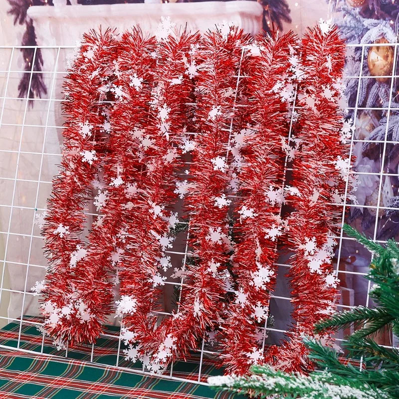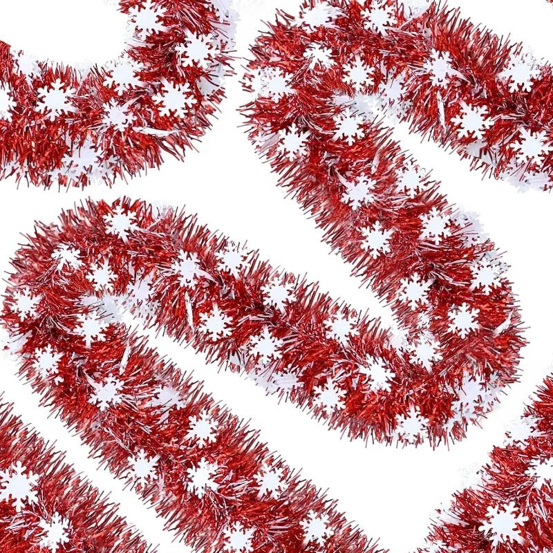 Christmas Red Snowflake Ribbon Garland DIY Xmas Tree Foil Pull Flower Ribbons Wedding Party Home Hanging Decoration Pendent