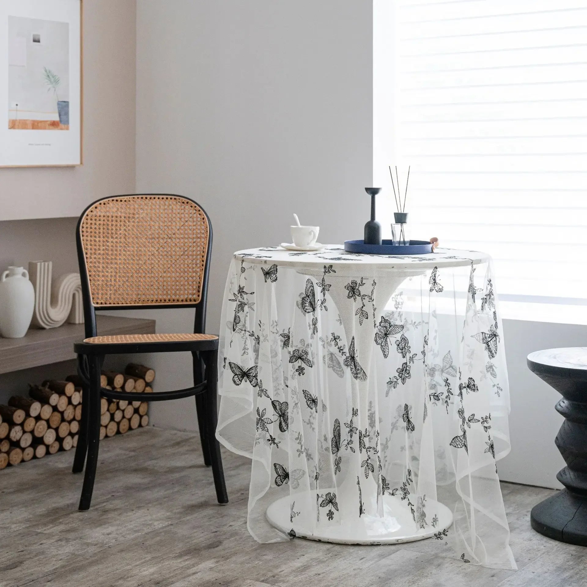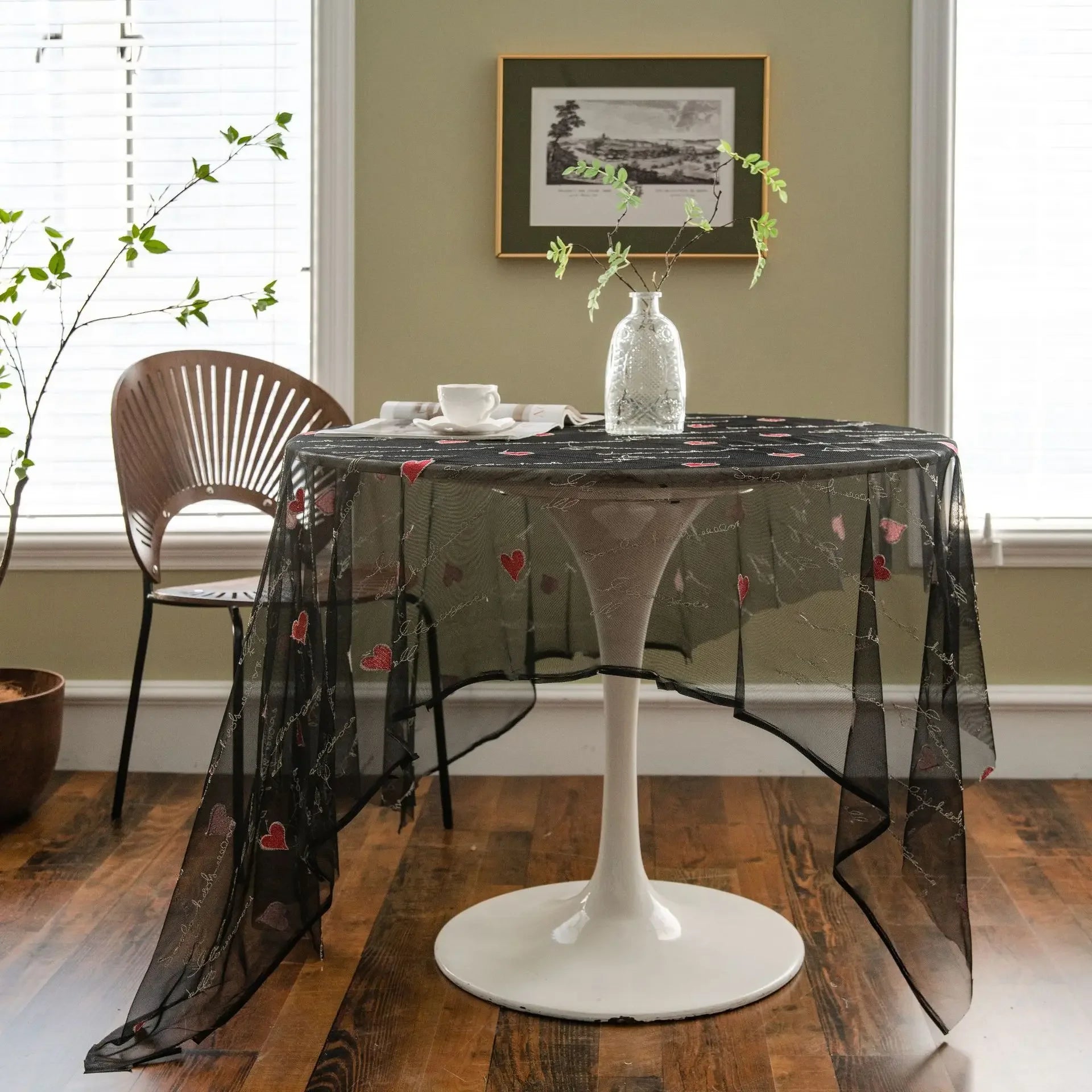Christmas Transparent Lace Tablecloth White Rectangular Colorful Embroidered Flower Table Cloth Cover for Home Party Supplies
