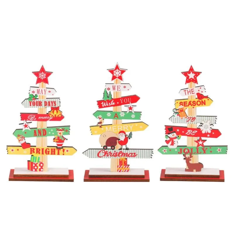 Christmas Tree Table Decoration Sign Board Santa Claus Direction Wooden Sign Board Christmas Table Decoration Tree Ornament