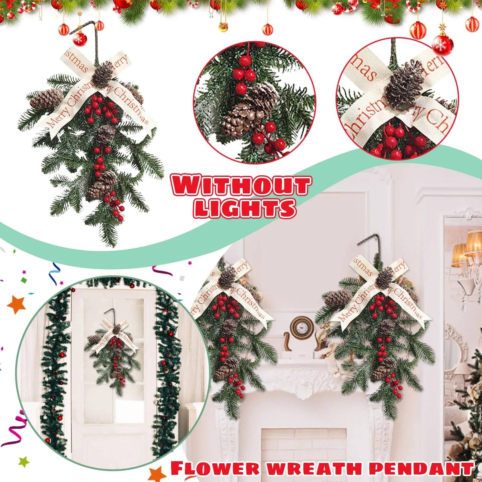 Christmas Wreath Decor Pine Needle Fake Fruit Needle Rattan Wall Hanging Wreath Home Door Garland Crown Table Event Party Suppli