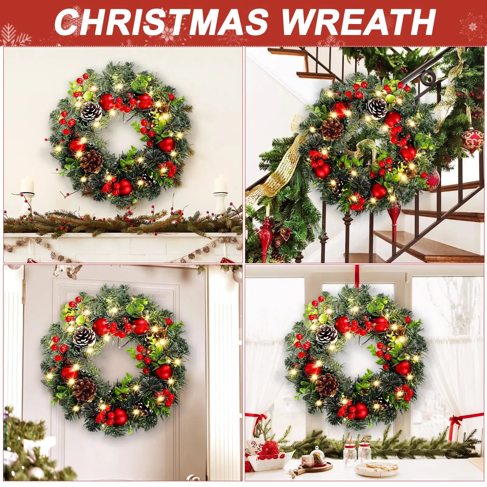 Christmas Wreath with Light Front Door Wreath Wall Decoration Christmas Layout Props