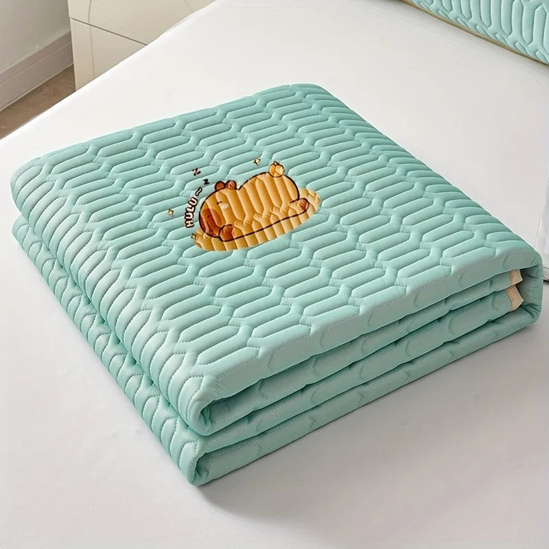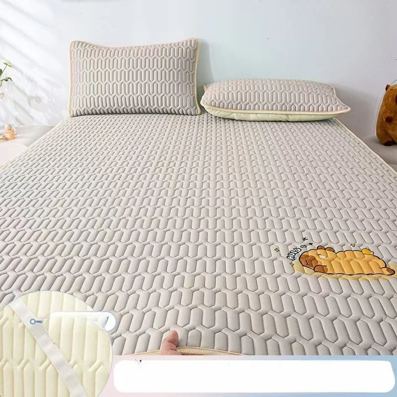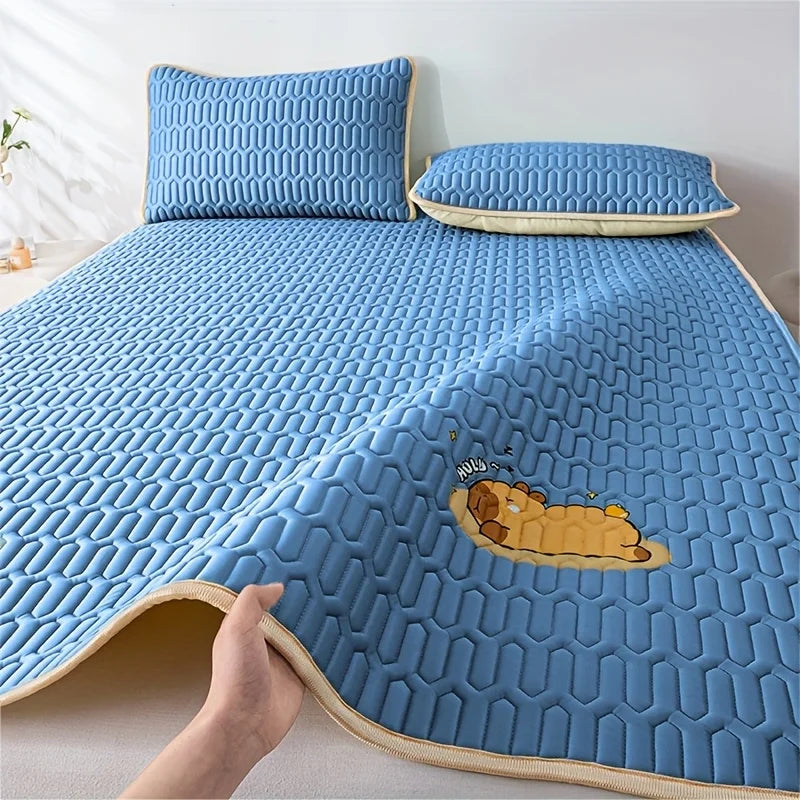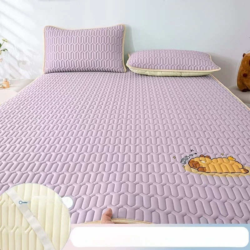 Cool Feeling Ice Fabric Bed Linen Single Summer Cold Bed Pad Washable Cartoon Mattresses Elastic Band Four Corners Bedspreads