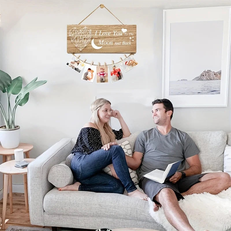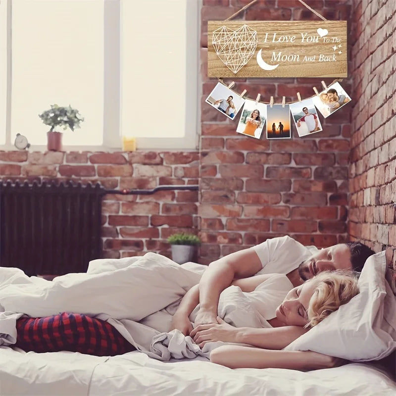 Couple Picture Frame Collage Hanging Photo Holder for Wall Decor Mom Birthday Gifts I Love You To The Moon Decortive Sign