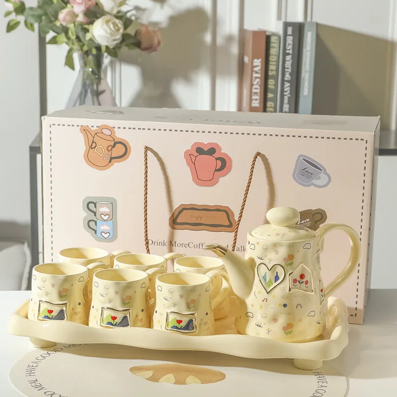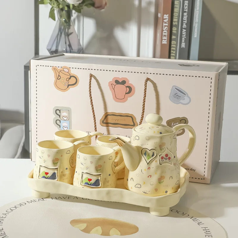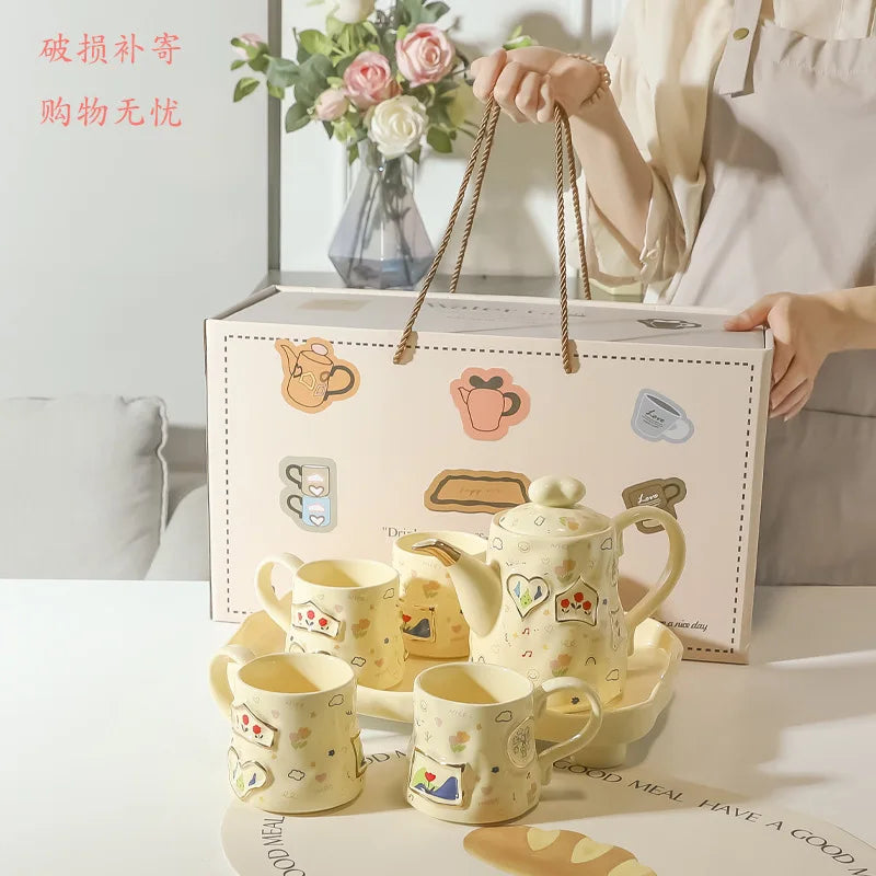 Cream Style Ceramic Water Cup and Kettle Set Afternoon Tea Set Coffee Mug