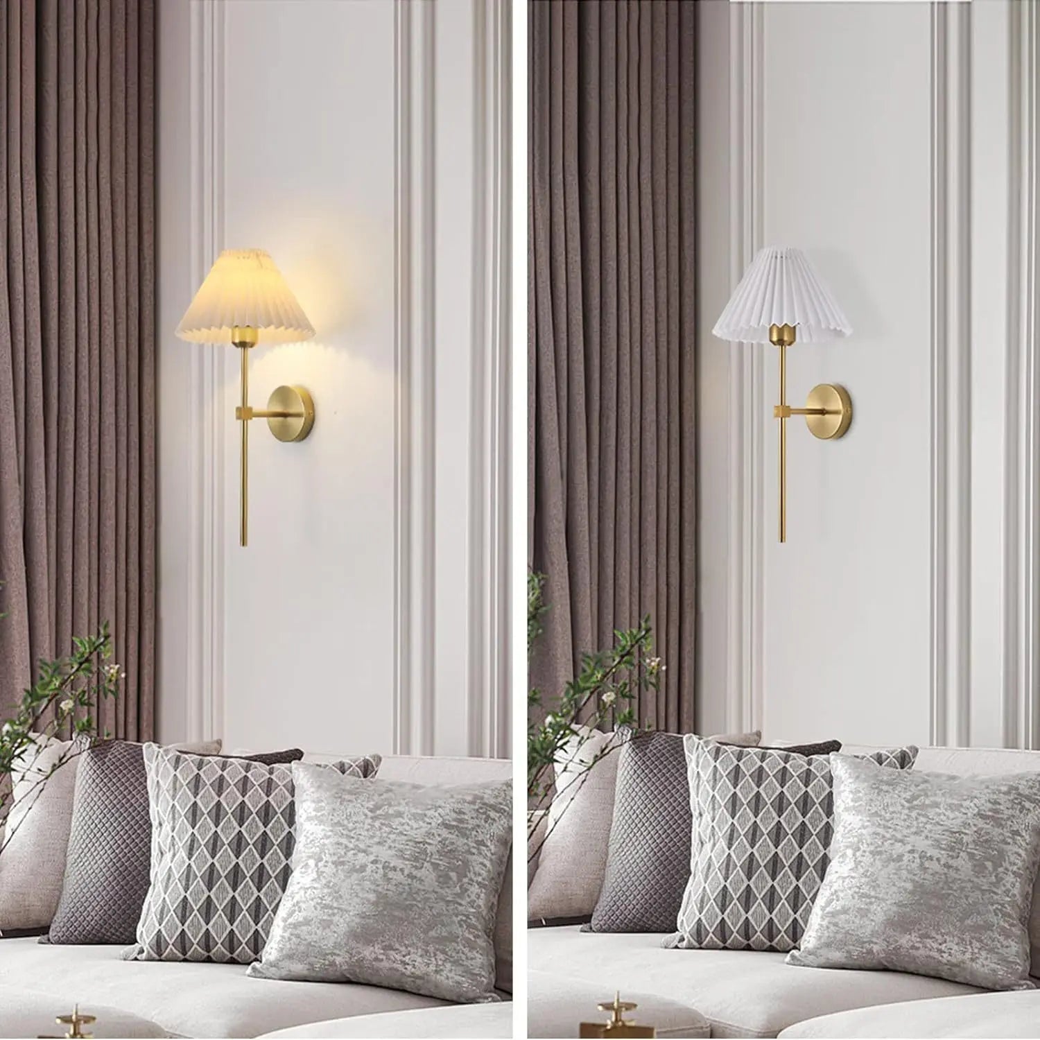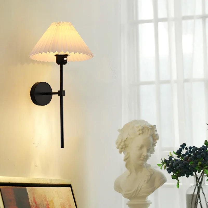 Cream Style Vintage Bedroom Bedside Reading Led Wall Lamp Retro Study Fabric Pleated Lampshade E27 Lamp Head