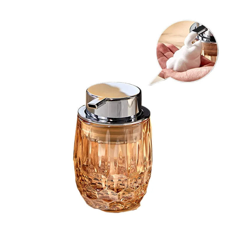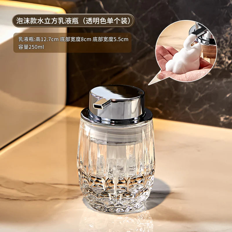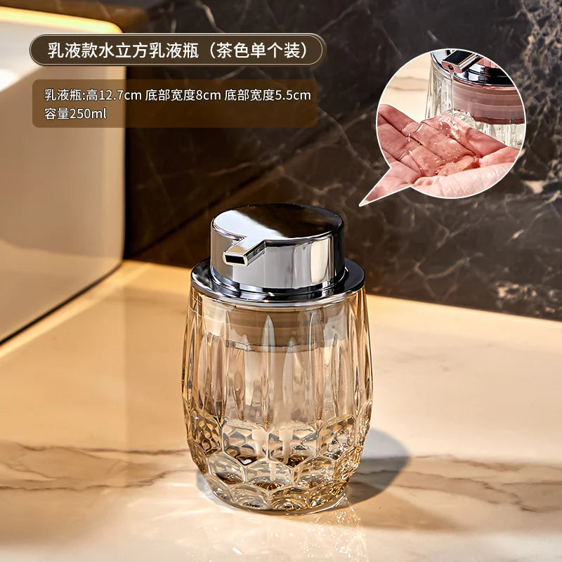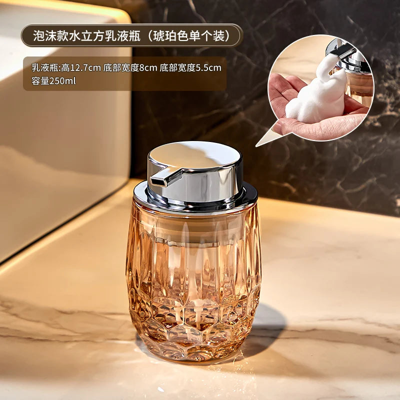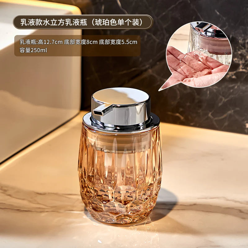 Creative Amber Diamond Glass Lotion Bottle Manual Push Soap Dispenser Hotel Bathroom Accessories Shampoo Moisture Bottle Modern