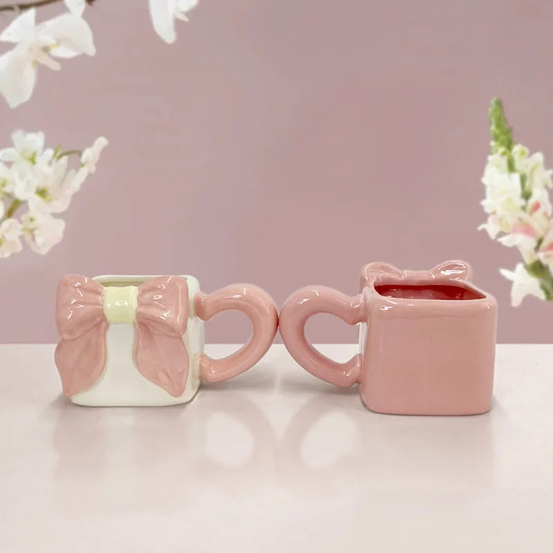Creative Ceramic Coffee Cup Three-dimensional Bow Mug Exquisite Afternoon Tea Ceramic Flower Tea Cup Home Breakfast Milk Mug New