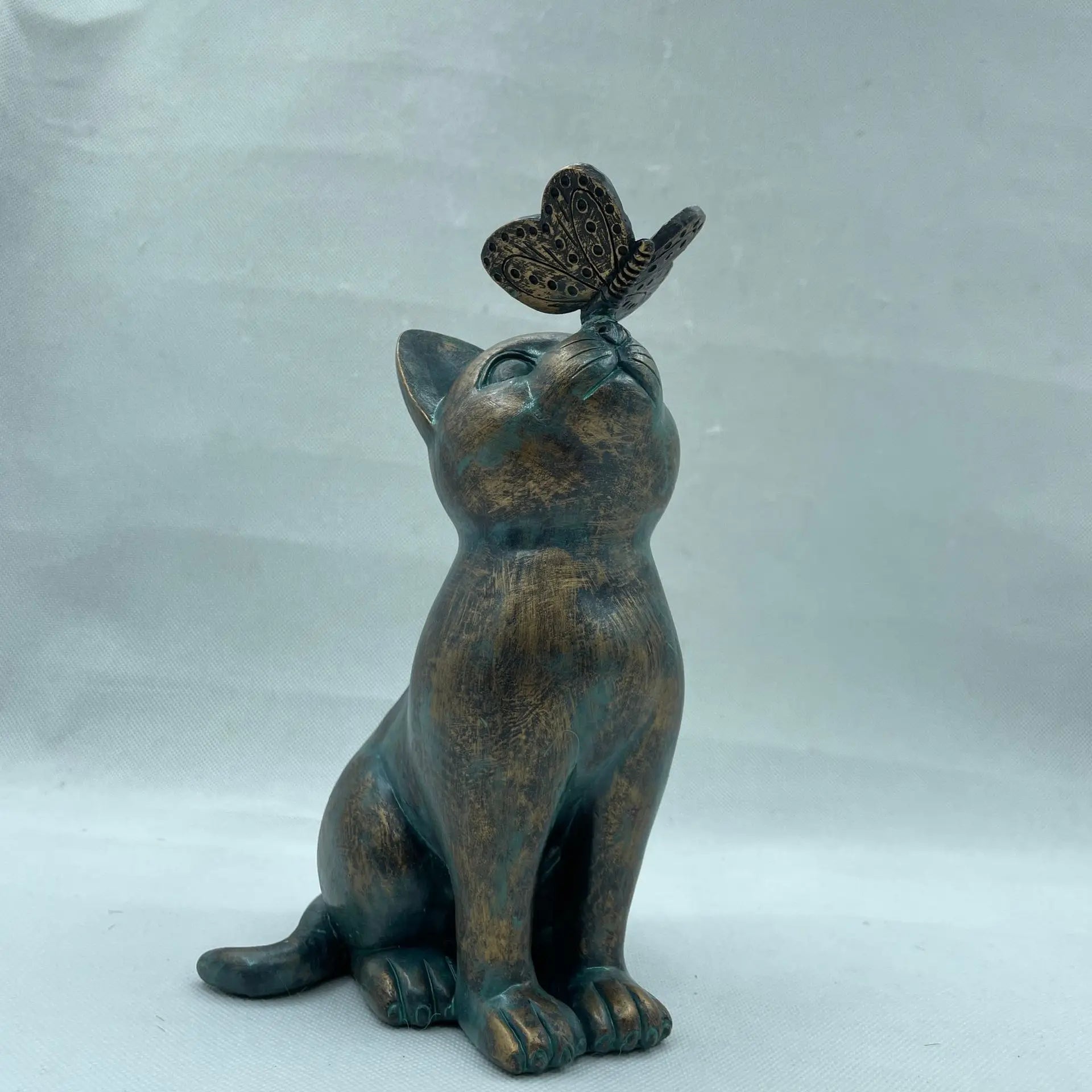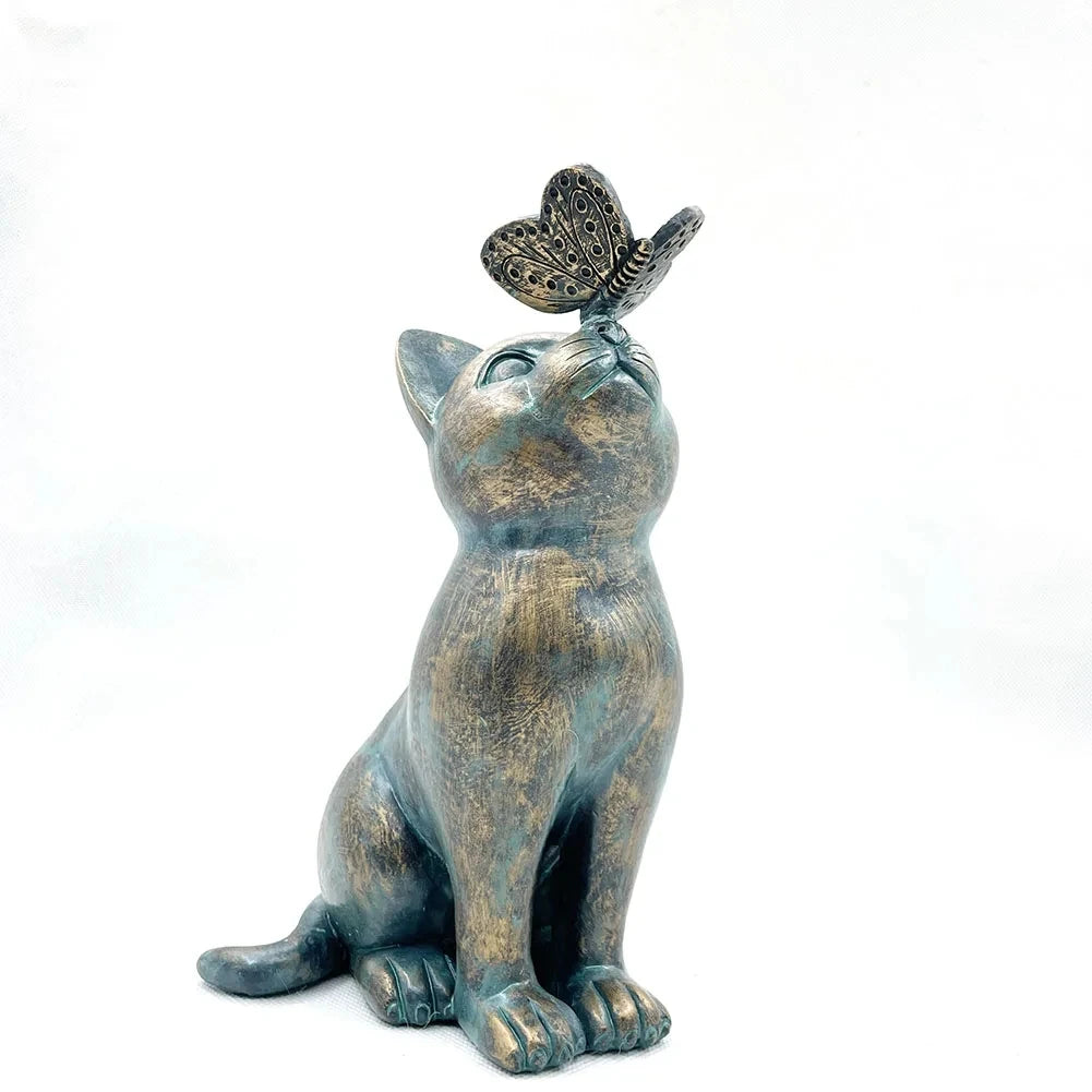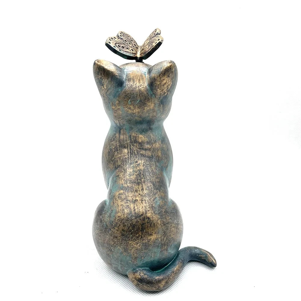 Curious Cat and Butterfly Garden Outdoor Sculpture Statue Bronze Lawn Porch Resin Figurine Home Decorations