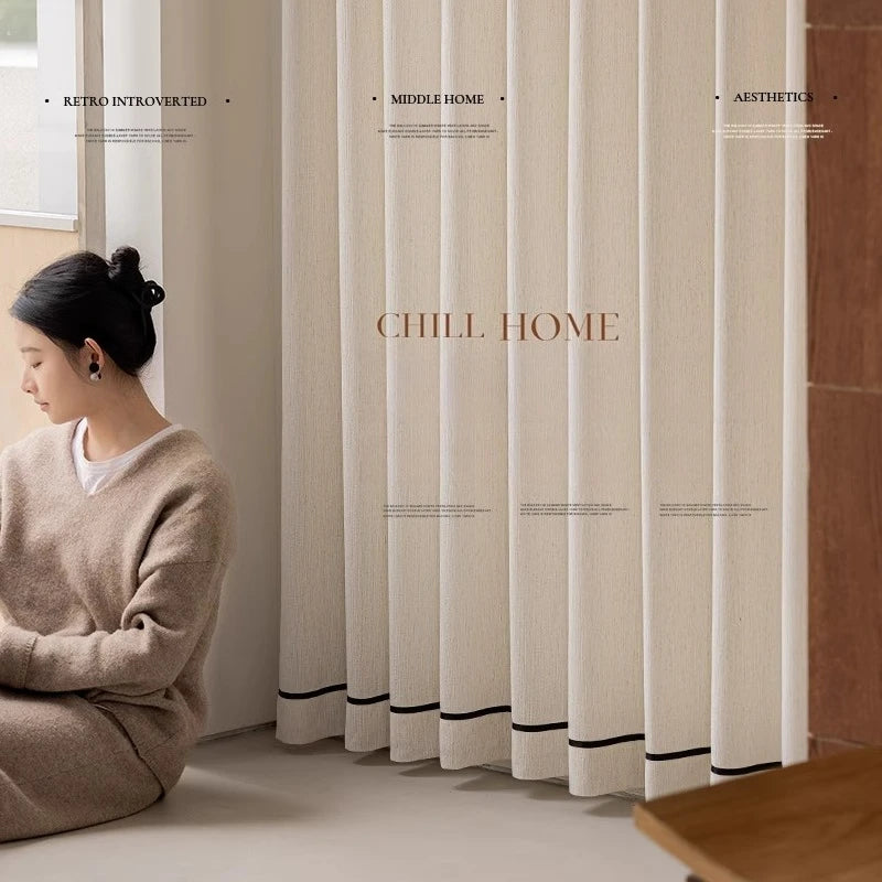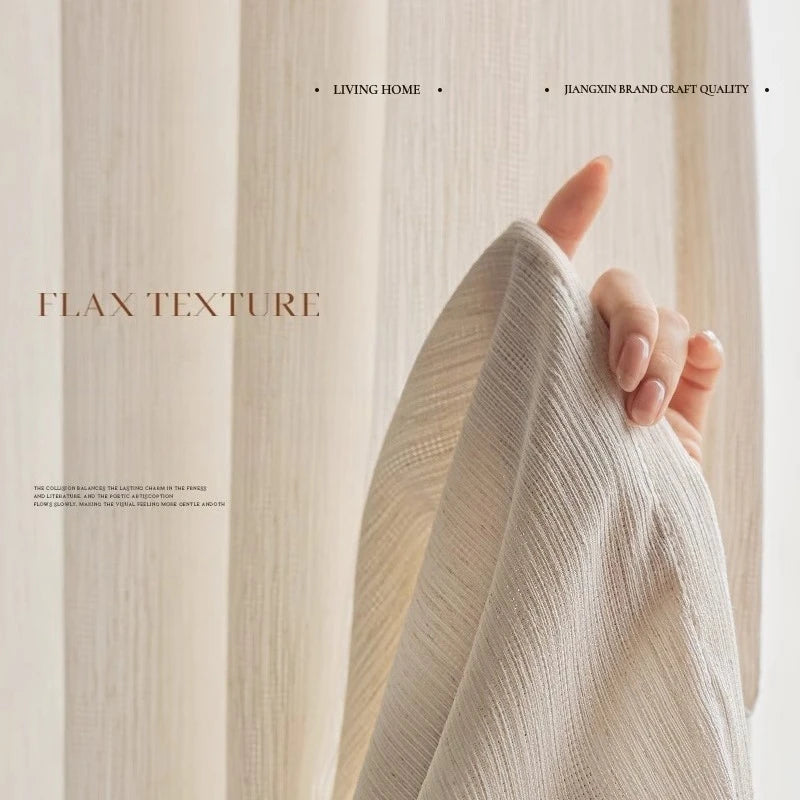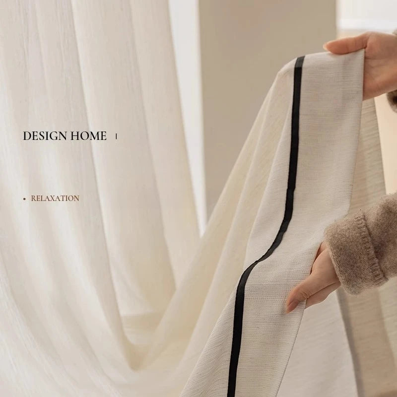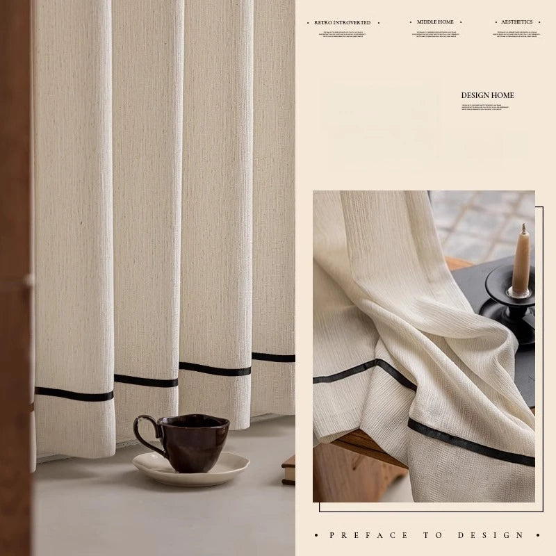 Curtains for Living Room Bedroom in Premium Black Edge Linen Voile with French Vintage Lace Stitching Semi Sheer Privacy Drapes