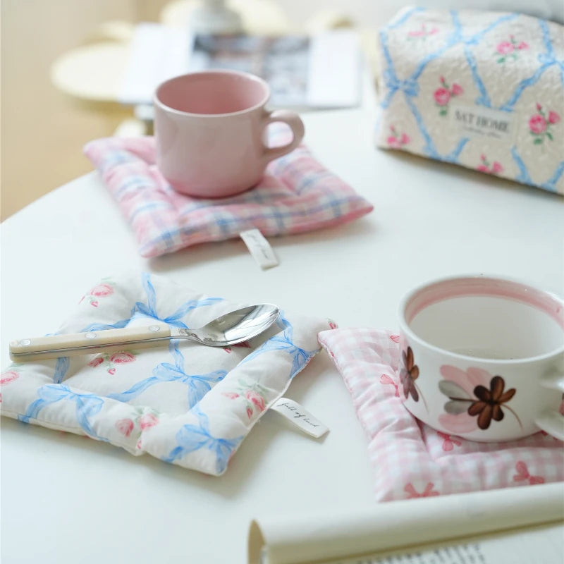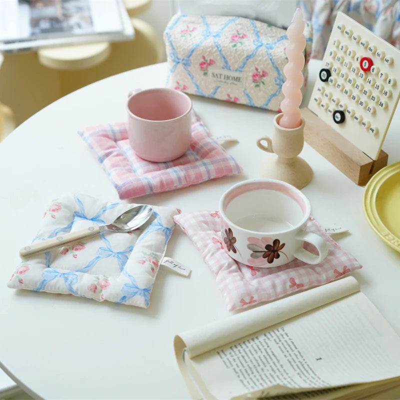 Cute Bow Pattern Hand Made Cotton Coaster Cloth Insulation Pad Table Mat Placemats Home Decoration Kitchen Accessories For Cup