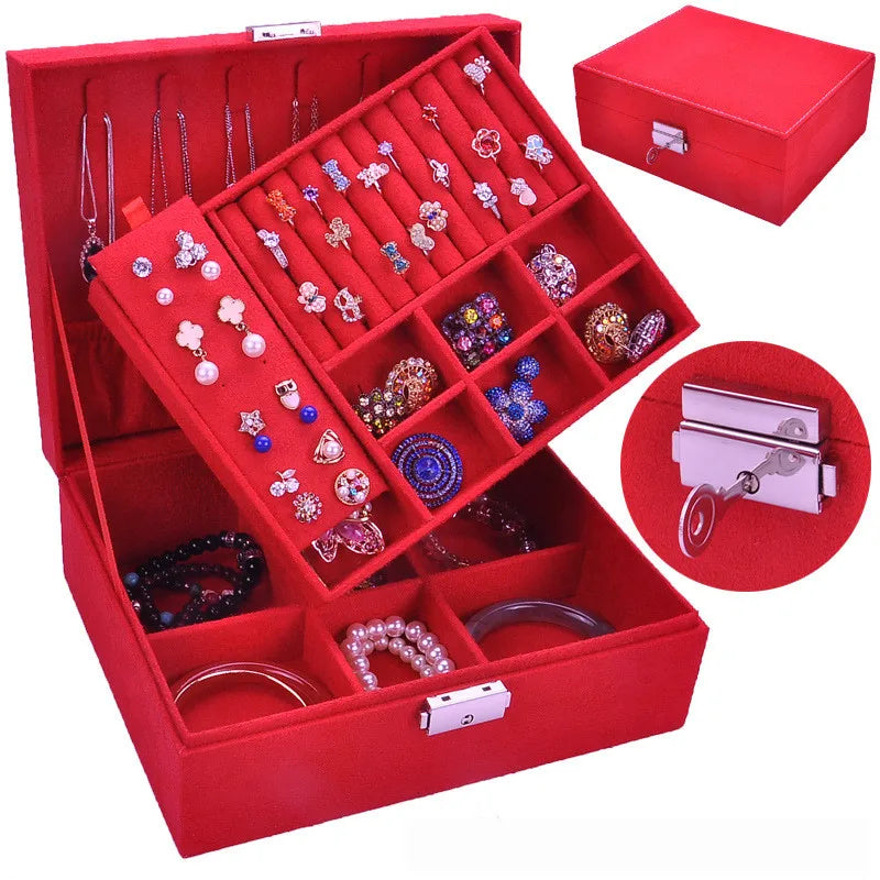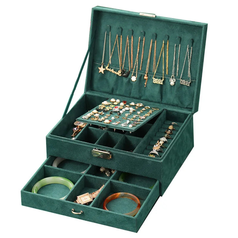 Double-Layer Velvet Jewelry Box – Large Capacity Organizer for Necklaces, Rings & Bracelets | Naturalbuilthome