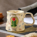 Dreamy Flower Clusters Handheld Ceramic Mug Good-looking Stylish Handpaint Souvenir Irregular Relief Breakfast Coffee Water Cup
