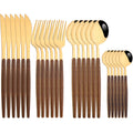 24Pcs Brown Silver Cutlery Set – Stainless Steel Dinnerware with Imitation Wooden Handle | Knife, Fork & Spoon Flatware Set | NaturalBuiltHome